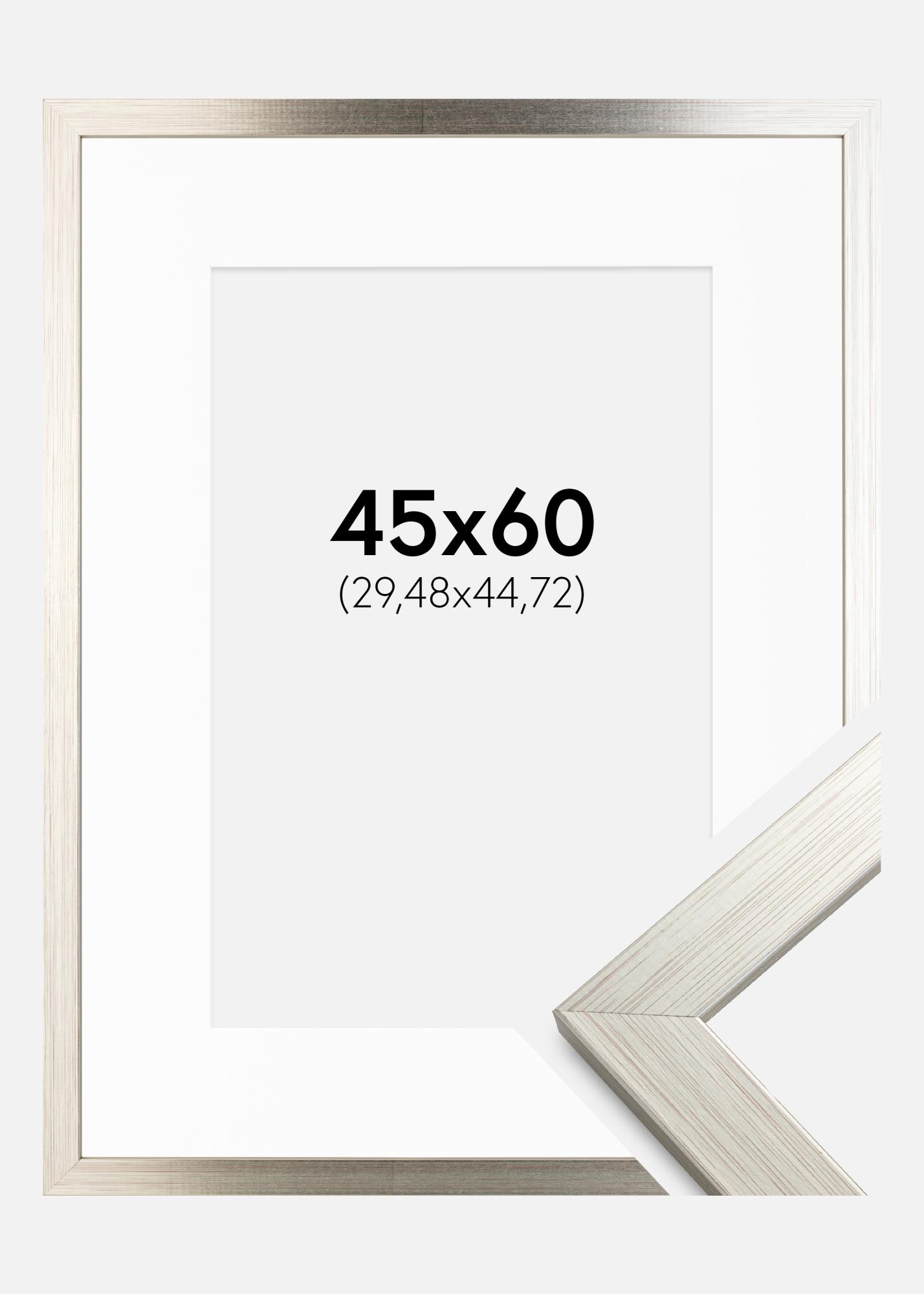 Ram Silver Wood 45x60 cm - Passepartout Vit 12x18 inches