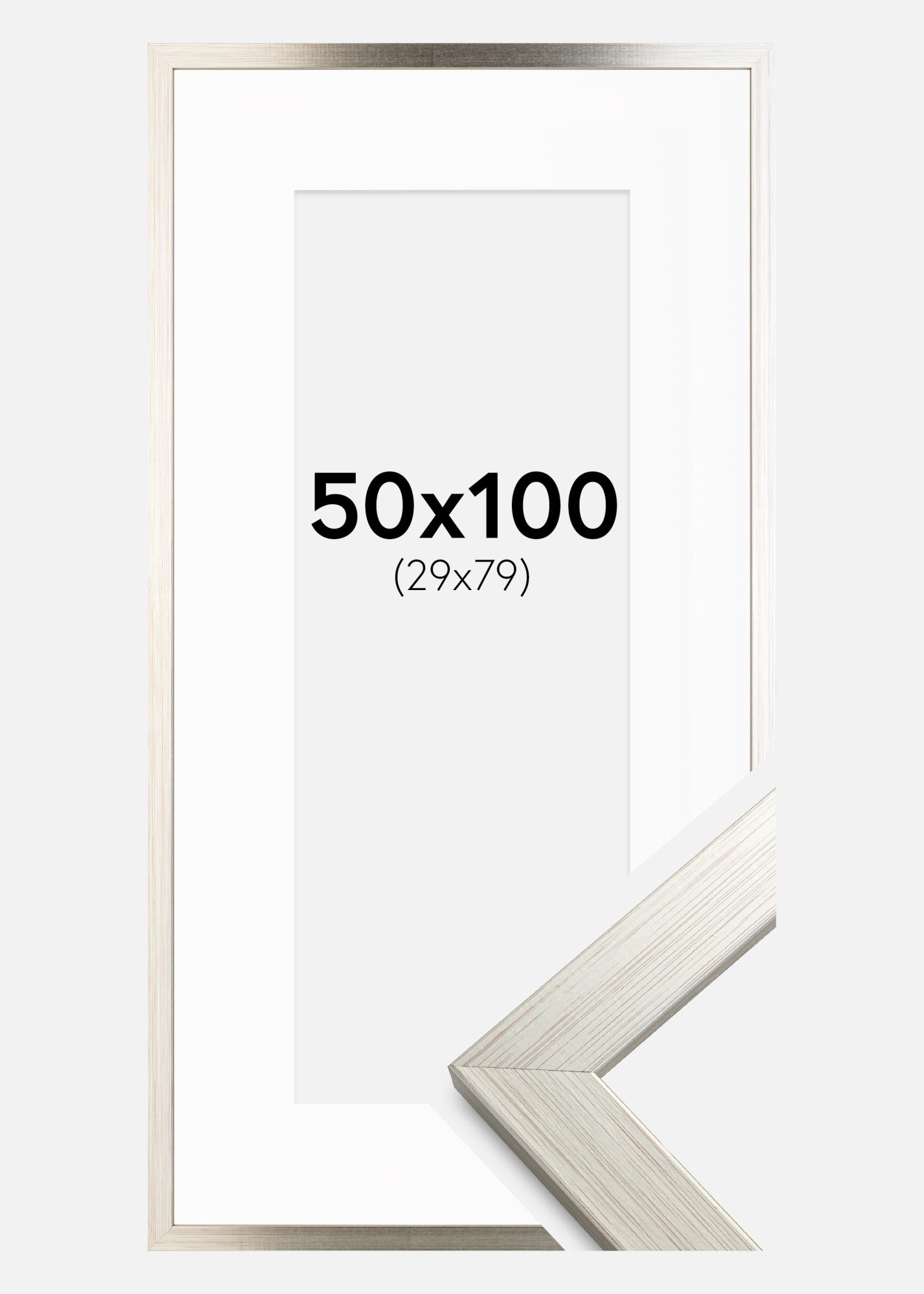 Ram Silver Wood 50x100 cm - Passepartout Vit 30x80 cm