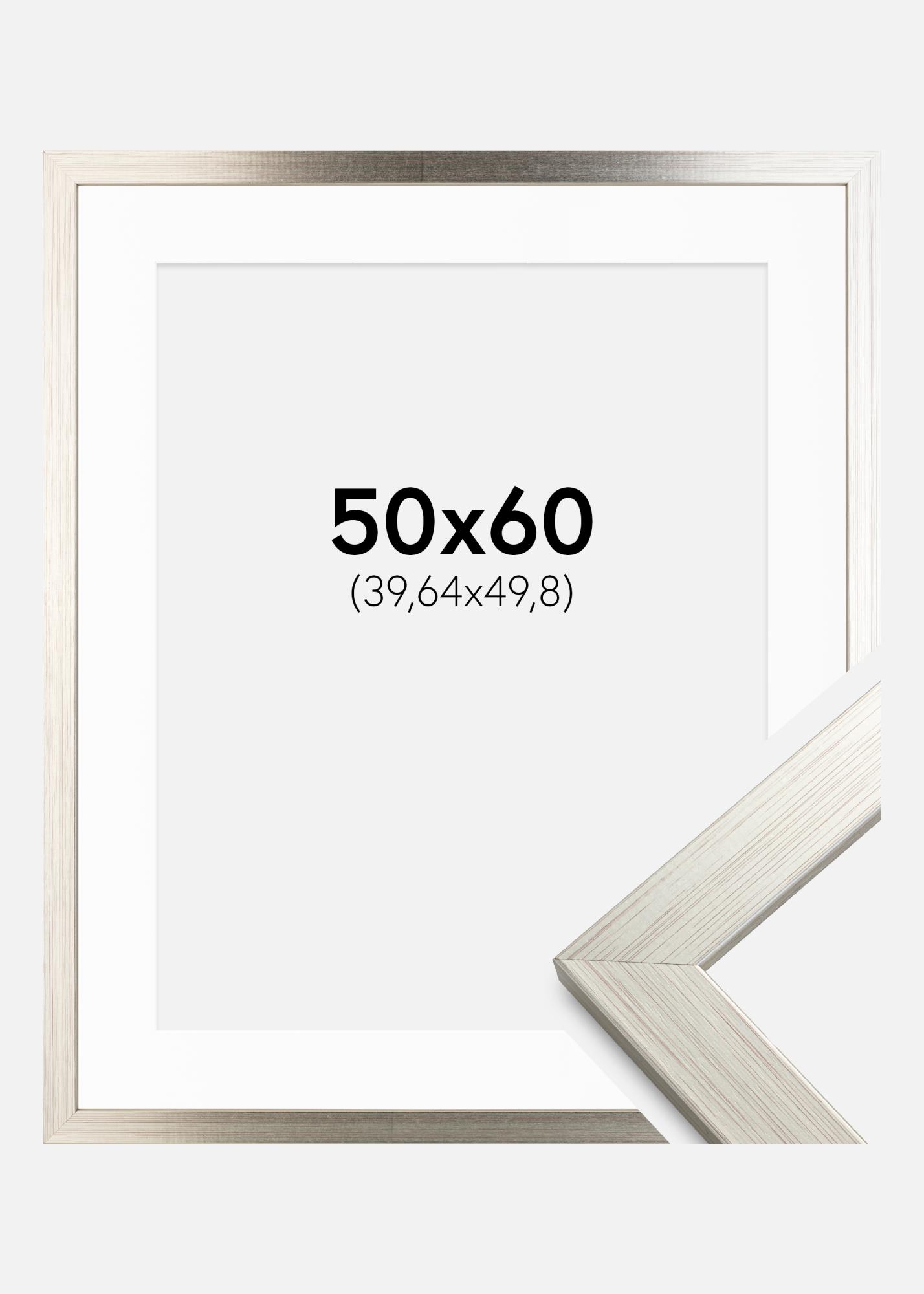 Ram Silver Wood 50x60 cm - Passepartout Vit 16x20 inches
