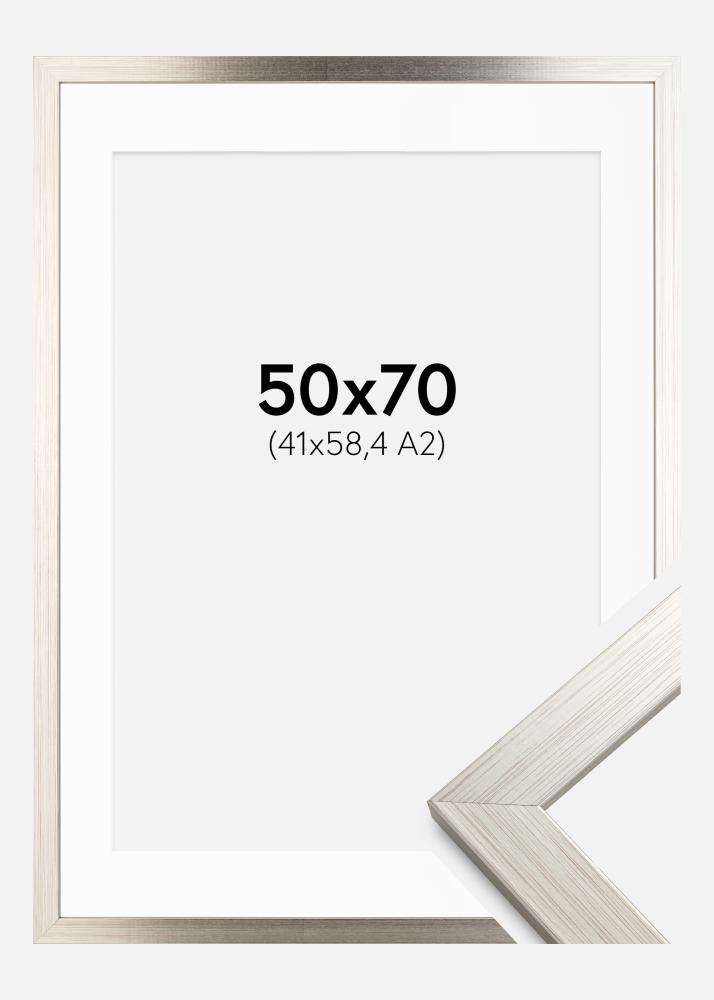Ram Silver Wood 50x70 cm - Passepartout Vit 42x59,4 cm (A2)