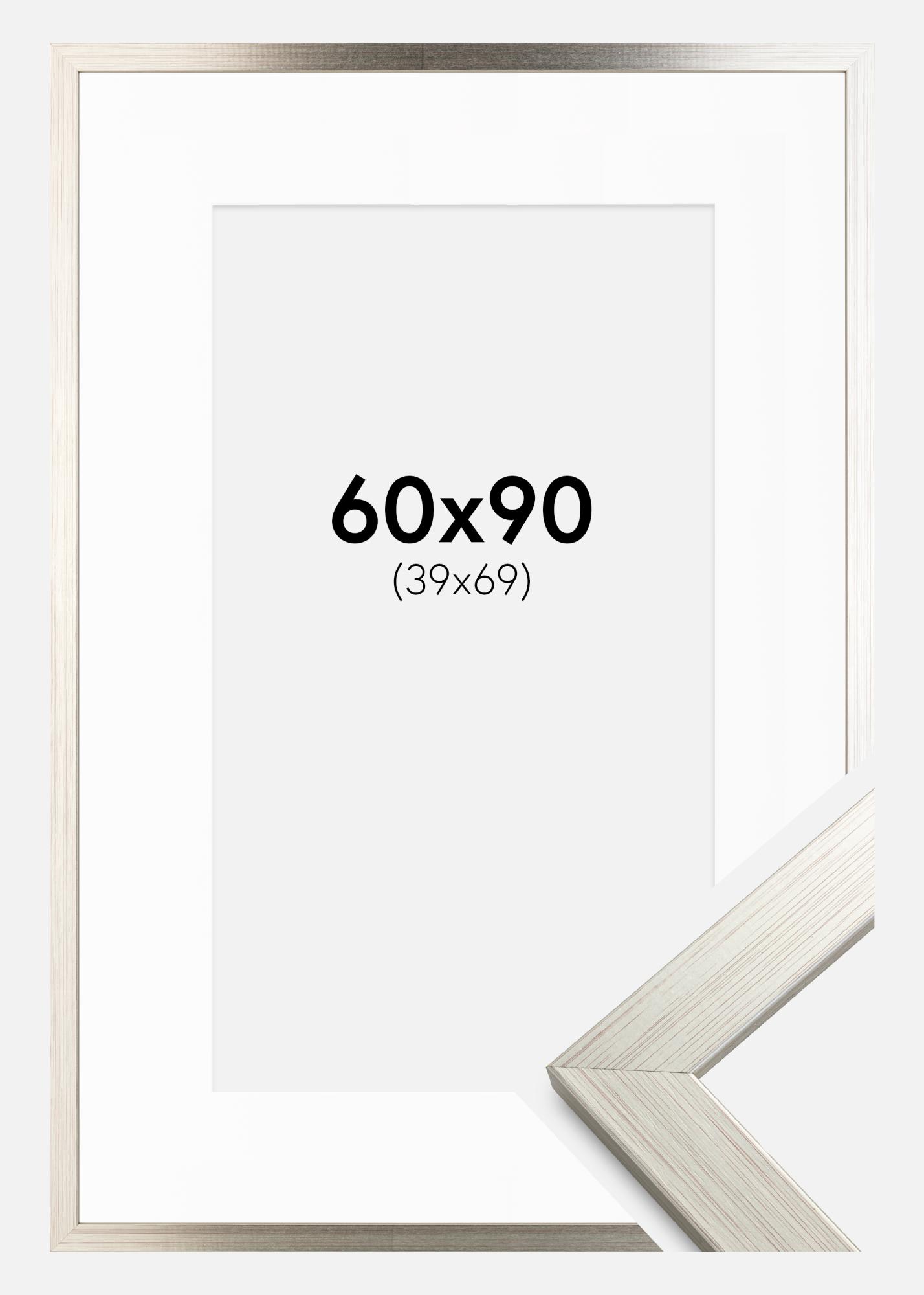 Ram Silver Wood 60x90 cm - Passepartout Vit 40x70 cm