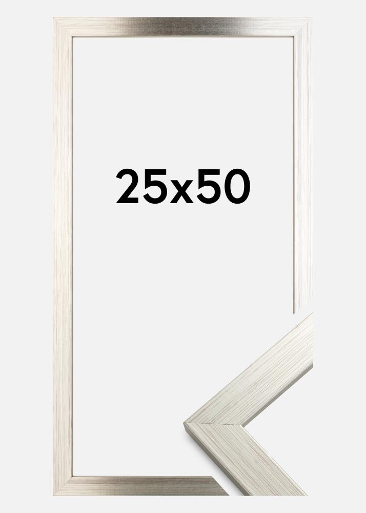 Ge dina bilder den uppmärksamhet de förtjänar med en stilren silverfärgad ram i storleken 25x50 cm. Denna eleganta silverram är inte bara en visuell höjdpunkt på din vägg, utan även ett praktiskt val för att bevara dina minnen. Med sin slanka ramlist på 22 mm bredd och ett djup på 15 mm, skapar den en diskret men ändå närvarande inramning av ditt fotografi eller konstverk.