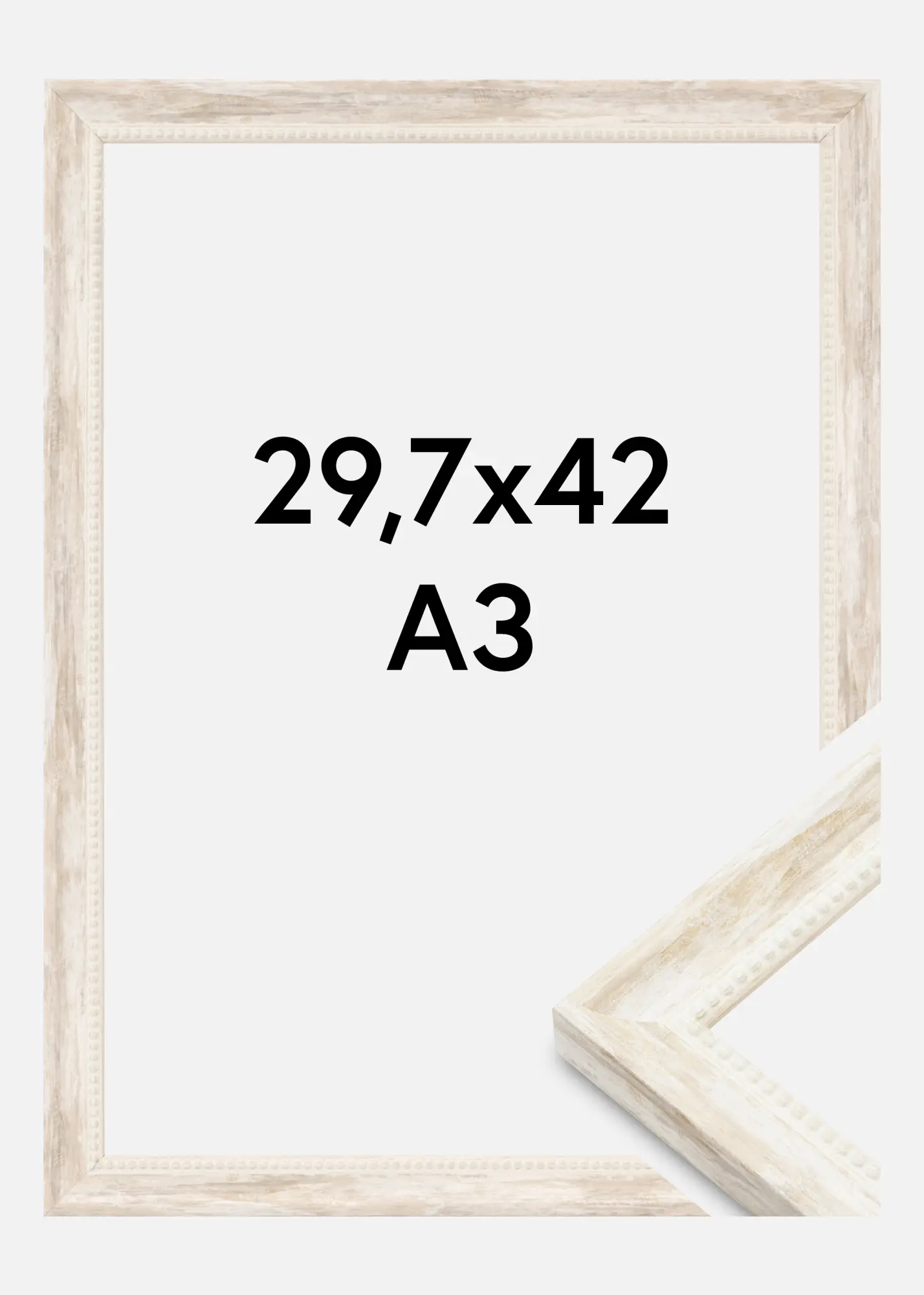 Denna vackra fotoram i storleken 29,7x42 cm är en perfekt kombination av rustik charm och stilren elegans. Med sin vita färg och dekorativa pärlkant längs insidan, erbjuder den en subtil antik känsla som förhöjer både konstverk och fotografier. Ramen är tillverkad av trä, vilket ger den en gedigen och hållbar konstruktion.
