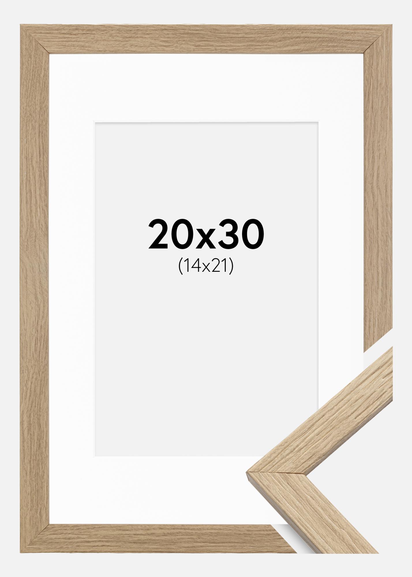 Ge dina favoritbilder den uppmärksamhet de förtjänar med en elegant ram, komplett med vit passepartout. Denna ram, med sin naturliga träfärg, tillför en varm och klassisk känsla till ditt hem. Den matta finishen ger en sofistikerad touch som kompletterar både moderna och traditionella inredningsstilar. Ramens bredd på 21 mm och djup på 14 mm skapar en distinkt profil på din vägg.
