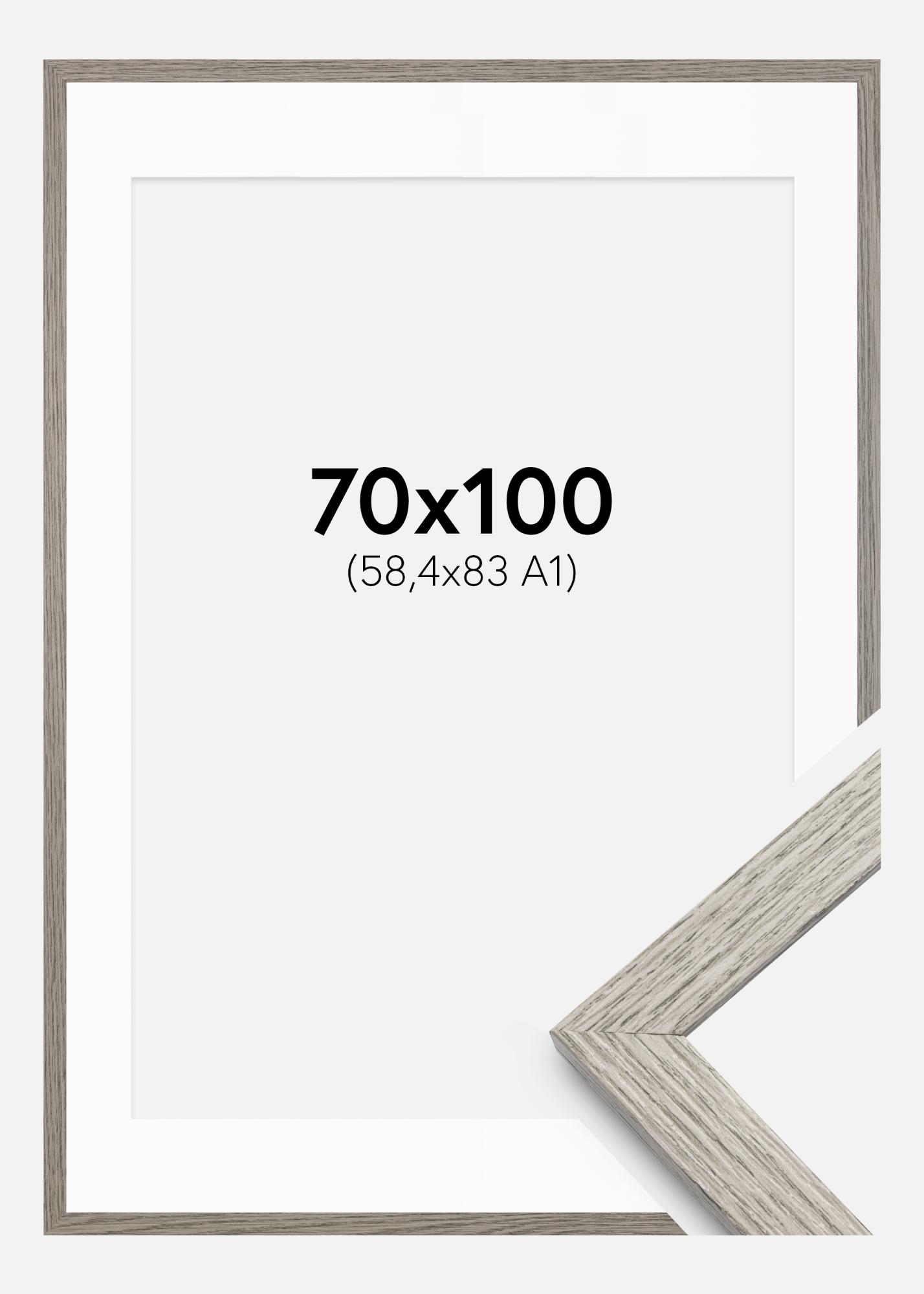 En elegant grå ram med passepartout kan förvandla vilket rum som helst genom att ge dina bilder en stilfull inramning. Denna ram, med sina yttermått på 72x102 cm, är perfekt för att framhäva konstverk eller fotografier i storleken 59,4x84 cm (A1). Den matta ytan och den subtila grå färgen ger en modern och sofistikerad känsla som passar in i de flesta inredningsstilar.