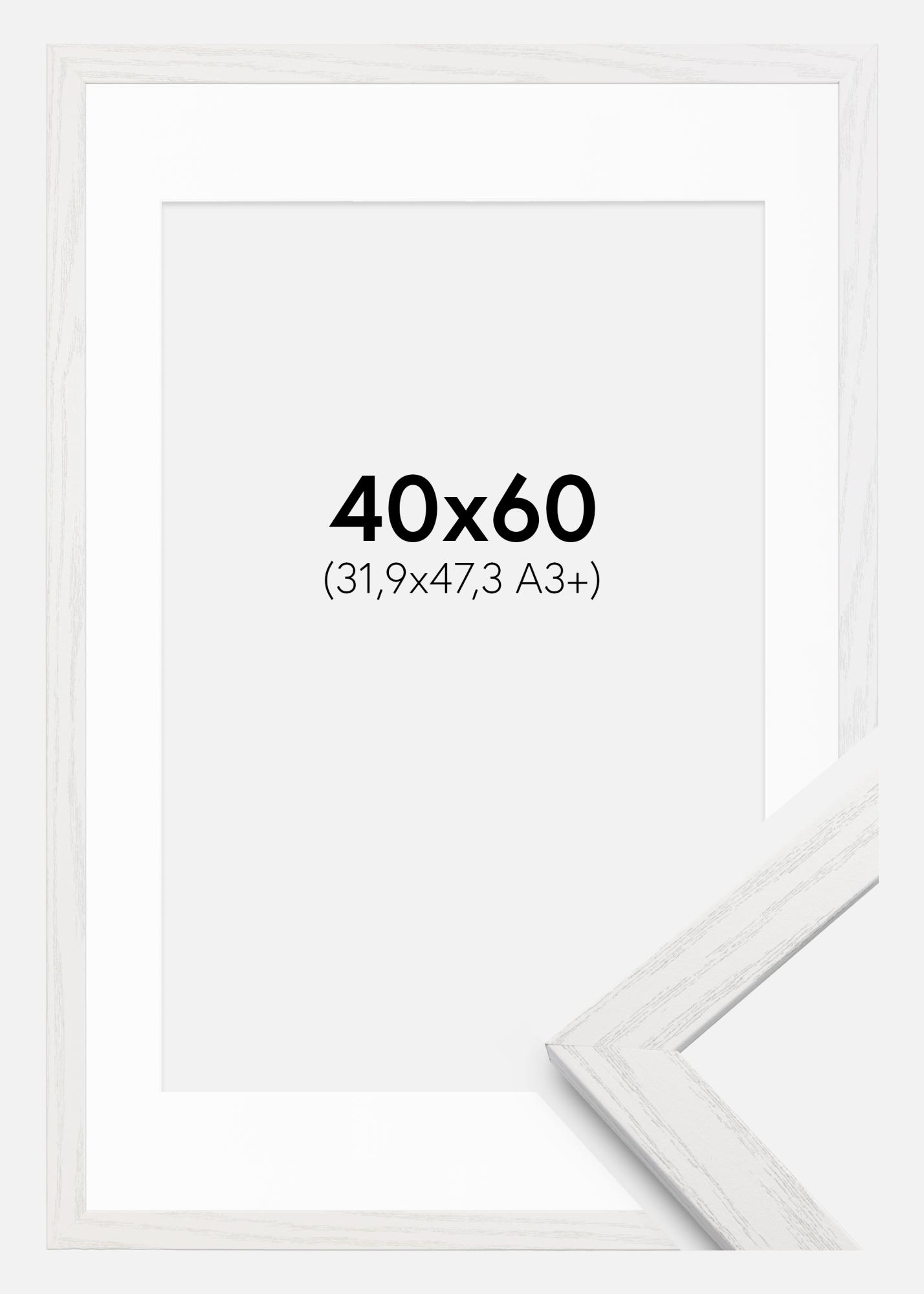 Passepartoun passar bild i 32,9x48,3 cm (A3+). Ramens färg är Vit med en bredd på 20 mm och ett djup på 14 mm. Ramen har en matt finish och passepartoun är också vit. Ramens yttermått är 42x62 cm.