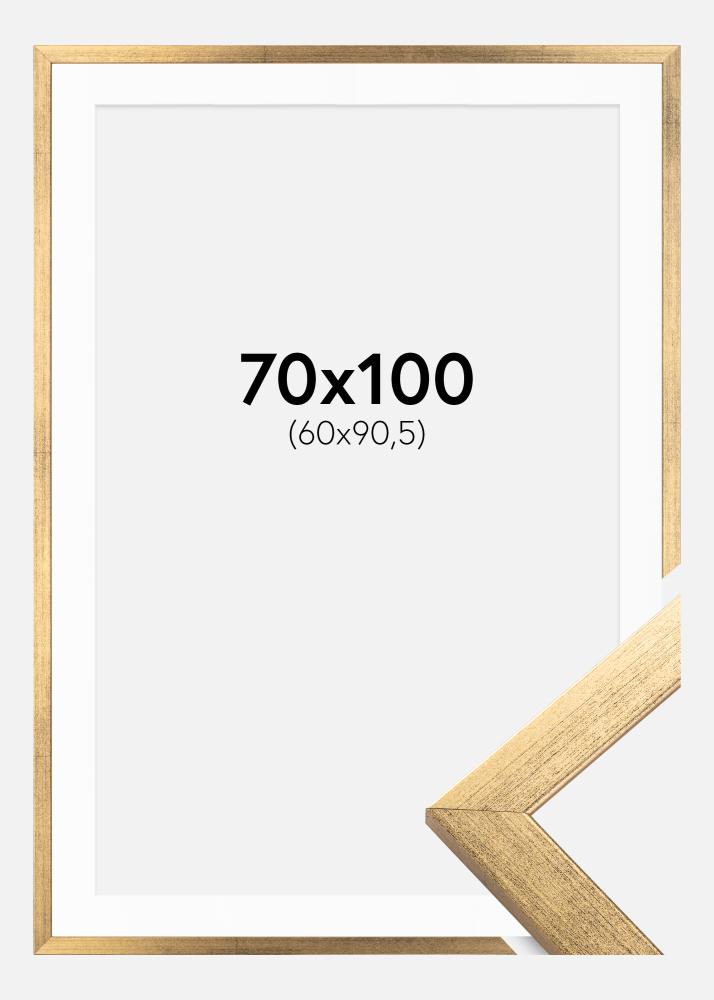 Förvandla ditt hem till en personlig konstutställning med denna eleganta guldram med vit passepartout. Ramen, som mäter 61x91,5 cm, är den perfekta inramningen för dina favoritbilder, konstverk eller affischer. Den medföljande passepartouten ger inte bara en professionell touch utan också en visuell paus som framhäver motivet och skyddar det från att vidröra glaset.