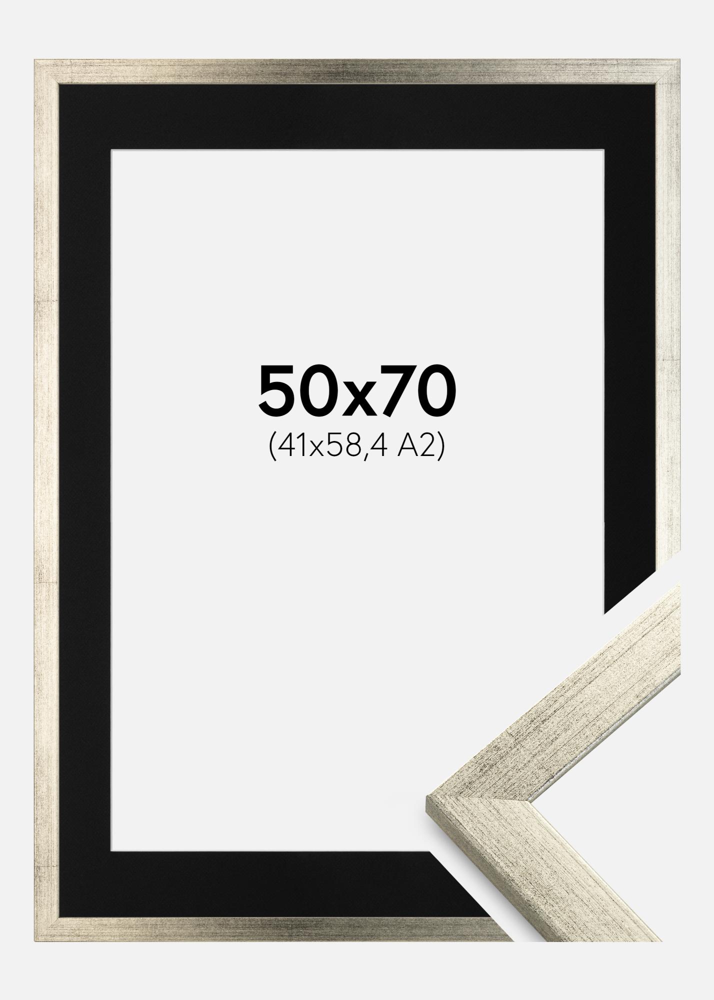 Ram Stilren Silver 50x70 cm - Passepartout Svart 42x59,4 cm (A2)