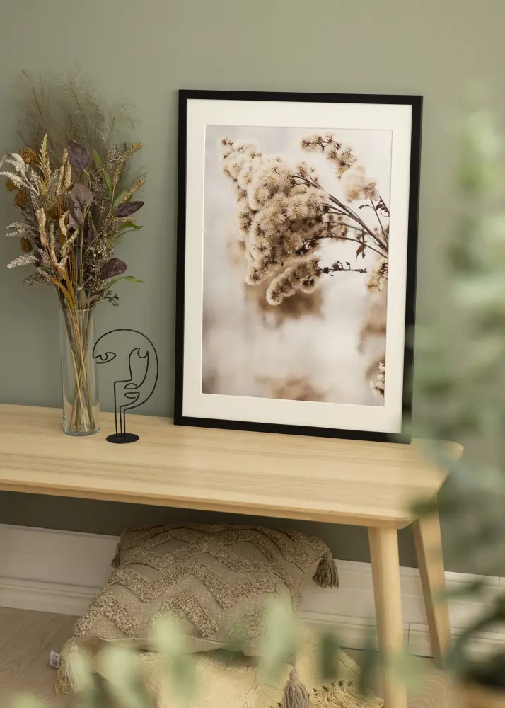 Ramen har en matt svart finish som ger en modern och stilren känsla, medan dess bredd på 20 mm och djup på 14 mm ger en stabil och robust inramning. Det kristallklara och splitterfria akrylglaset säkerställer att din bild alltid syns tydligt utan risk för skador. Glöm inte att ta bort skyddsfilmen på båda sidor av akrylglaset innan du använder ramen för att få den bästa klarheten.