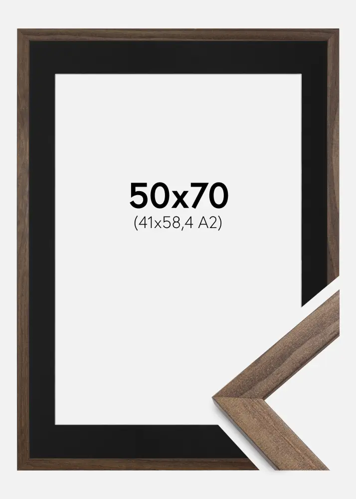Ram Stilren Valnöt 50x70 cm - Passepartout Svart 42x59,4 cm (A2)