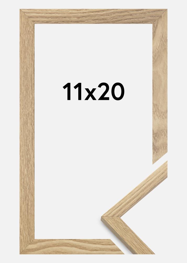 Ramen är tillverkad i MDF-material med en folierad ekfärgad yta och har en tunn ramprofil på 14 mm. Det finns gott om utrymme att komplettera dina bilder med en lyxig passepartout, tack vare ramens innerdjup (falsdjup) på 12 mm.