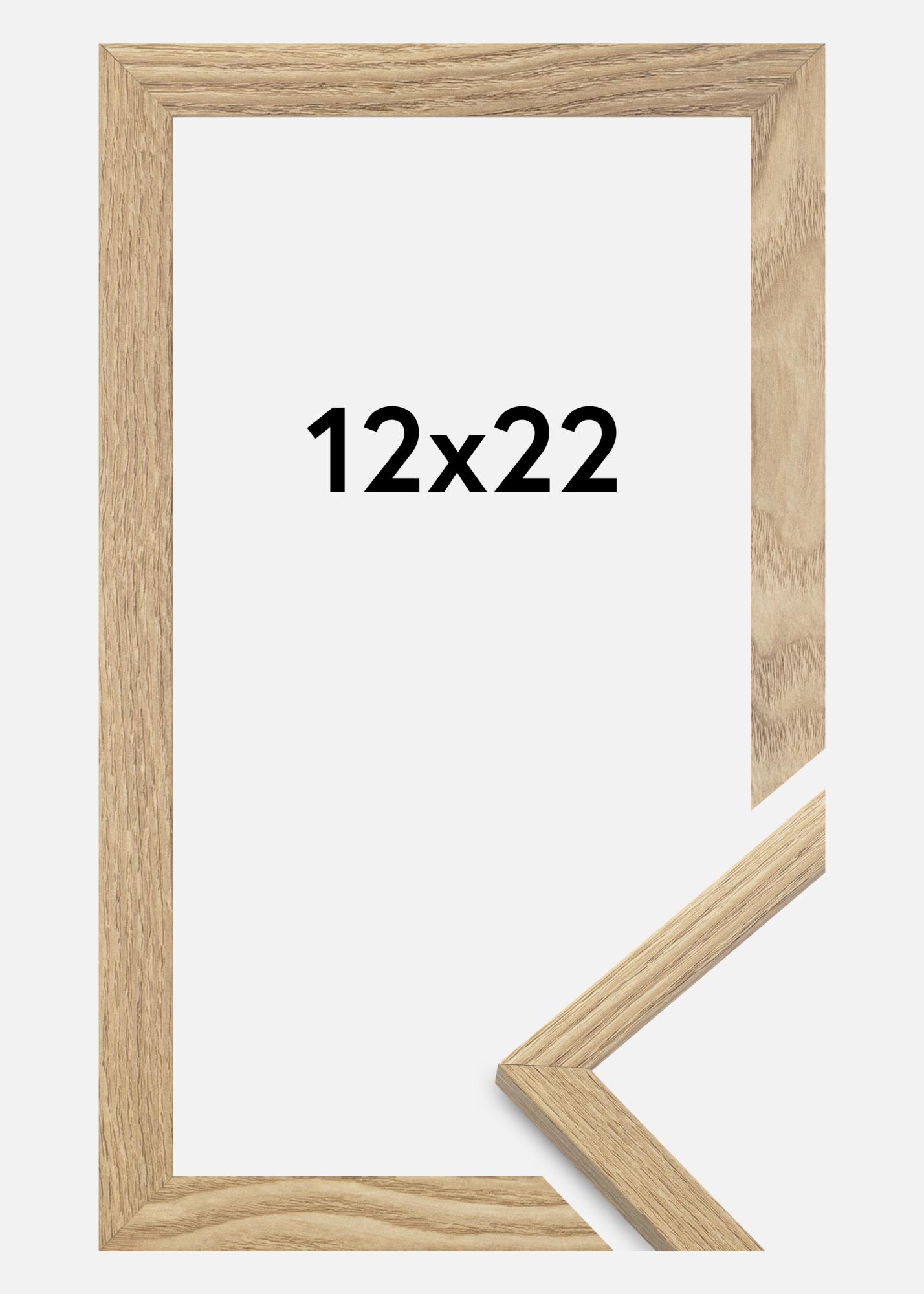 Ramen är tillverkad i MDF-material med en folierad ekfärgad yta och har en tunn ramprofil på 14 mm. Det finns gott om utrymme att komplettera dina bilder med en lyxig passepartout, tack vare ramens innerdjup (falsdjup) på 12 mm.