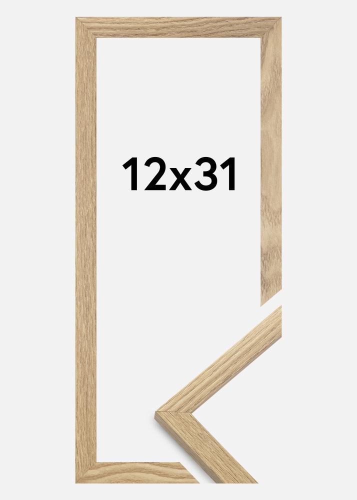 Ramen är tillverkad i MDF-material med en folierad ekfärgad yta och har en tunn ramprofil på 14 mm. Det finns gott om utrymme att komplettera dina bilder med en lyxig passepartout, tack vare ramens innerdjup (falsdjup) på 12 mm.