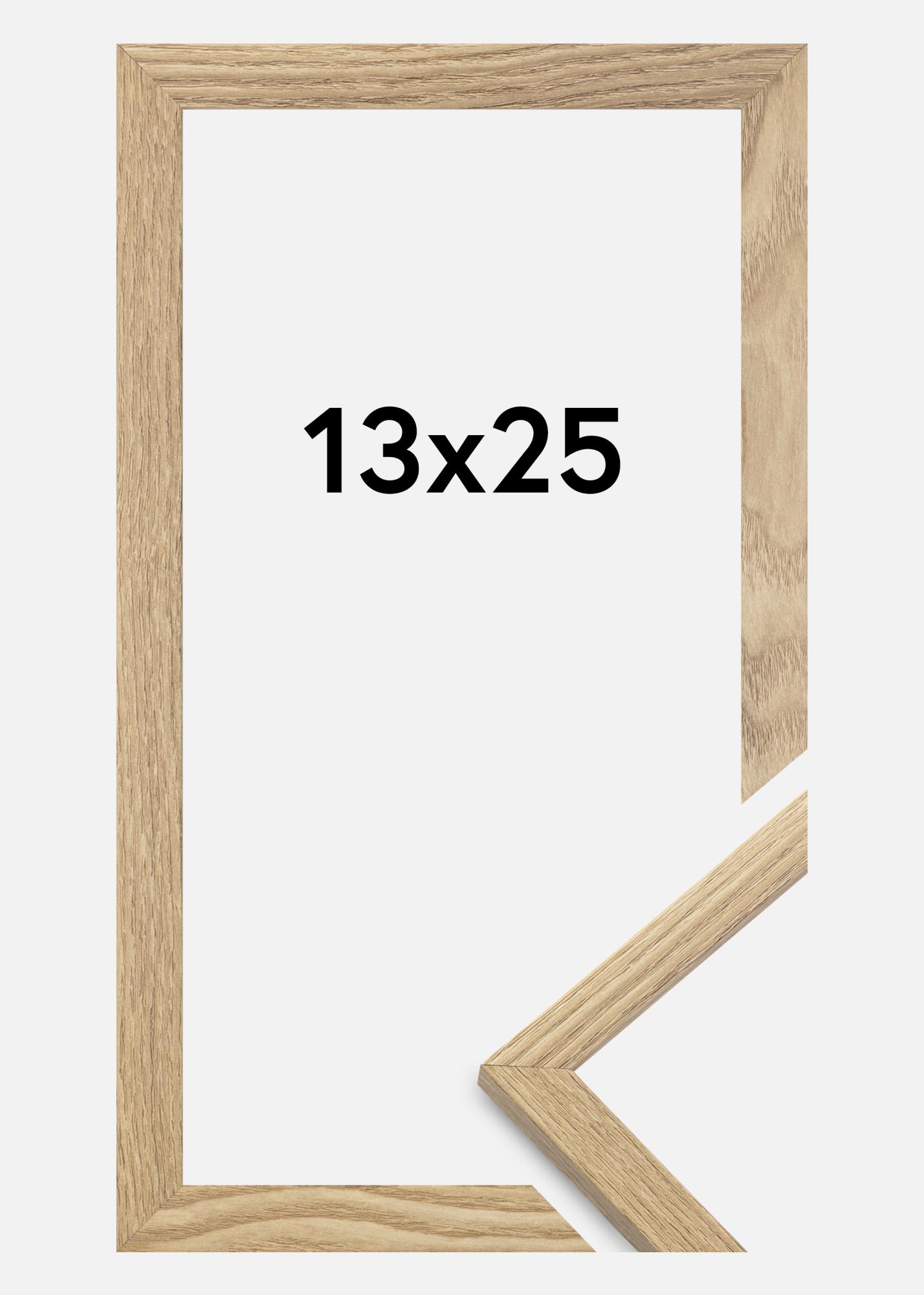 Ramen är tillverkad i MDF-material med en folierad ekfärgad yta och har en tunn ramprofil på 14 mm. Det finns gott om utrymme att komplettera dina bilder med en lyxig passepartout, tack vare ramens innerdjup (falsdjup) på 12 mm.