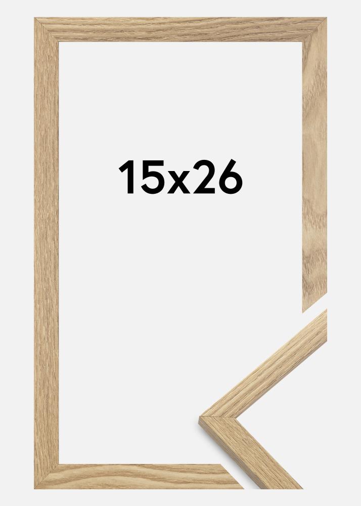 Ramen är tillverkad i MDF-material med en folierad ekfärgad yta och har en tunn ramprofil på 14 mm. Det finns gott om utrymme att komplettera dina bilder med en lyxig passepartout, tack vare ramens innerdjup (falsdjup) på 12 mm.