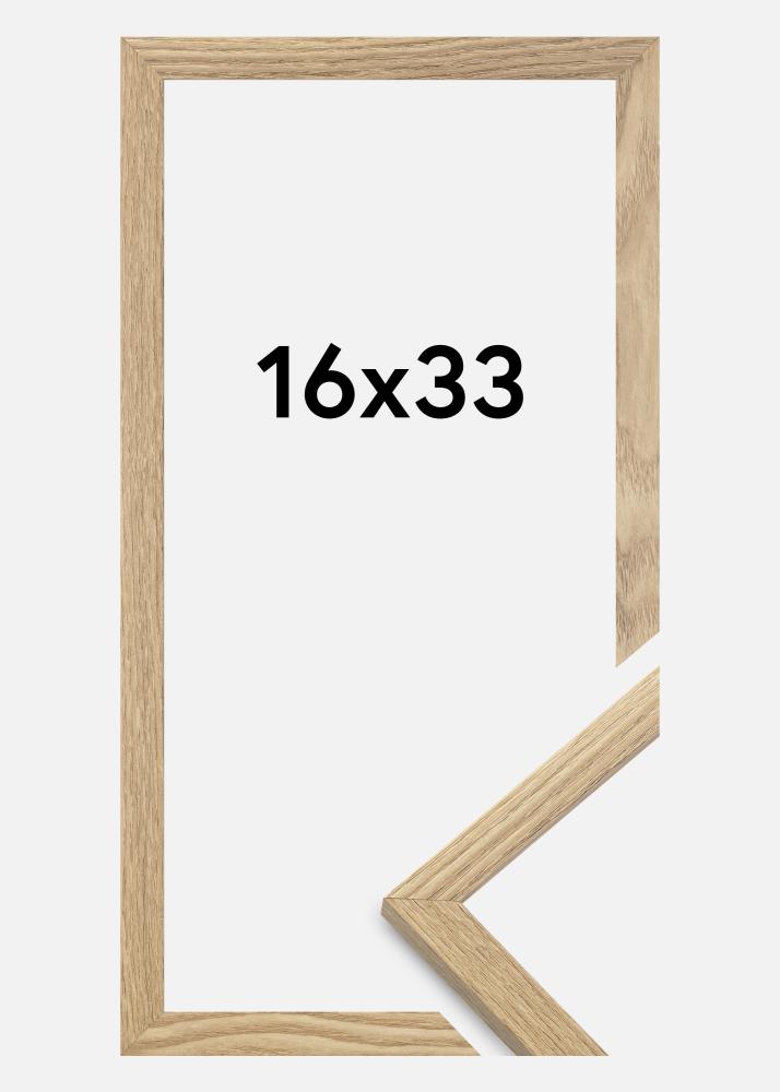 Ramen är tillverkad i MDF-material med en folierad ekfärgad yta och har en tunn ramprofil på 14 mm. Det finns gott om utrymme att komplettera dina bilder med en lyxig passepartout, tack vare ramens innerdjup (falsdjup) på 12 mm.