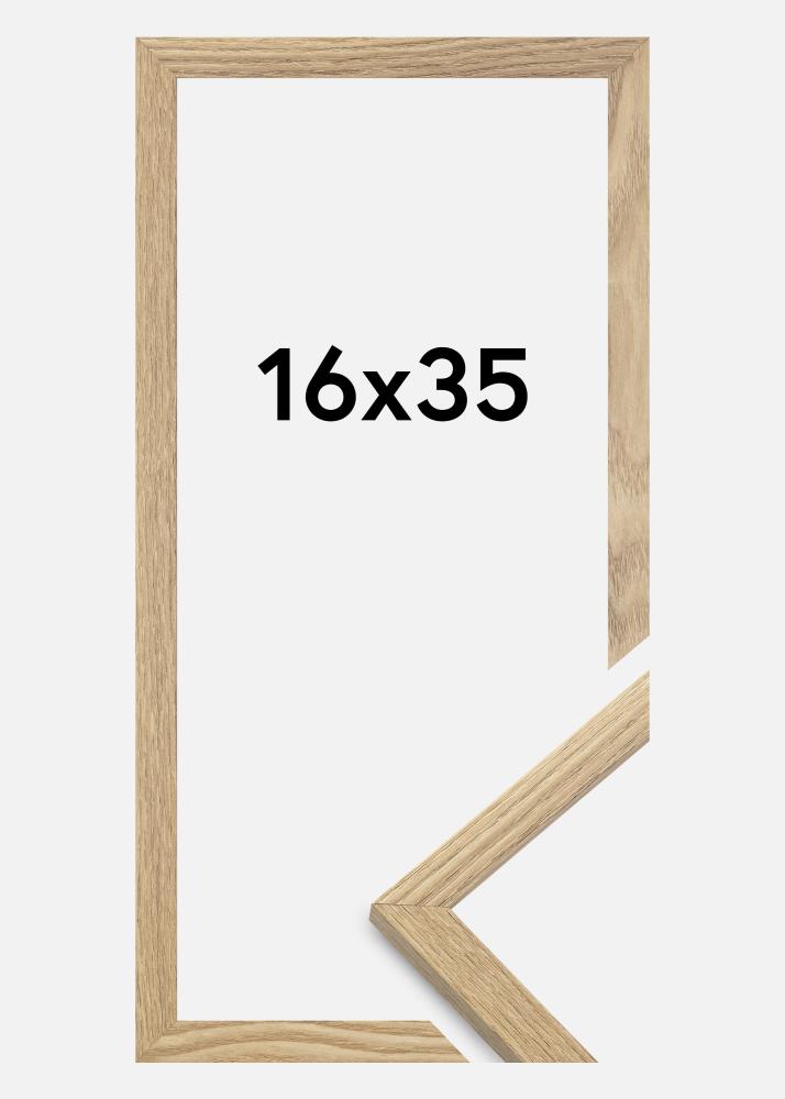 Ramen är tillverkad i MDF-material med en folierad ekfärgad yta och har en tunn ramprofil på 14 mm. Det finns gott om utrymme att komplettera dina bilder med en lyxig passepartout, tack vare ramens innerdjup (falsdjup) på 12 mm.