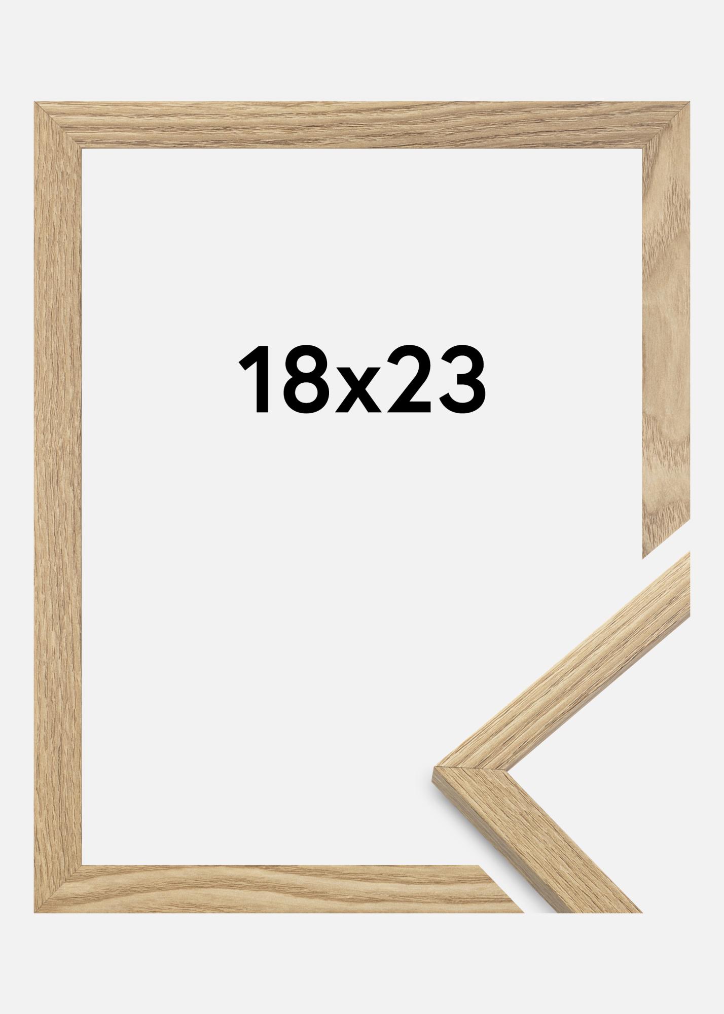 Ramen är tillverkad i MDF-material med en folierad ekfärgad yta och har en tunn ramprofil på 14 mm. Det finns gott om utrymme att komplettera dina bilder med en lyxig passepartout, tack vare ramens innerdjup (falsdjup) på 12 mm.