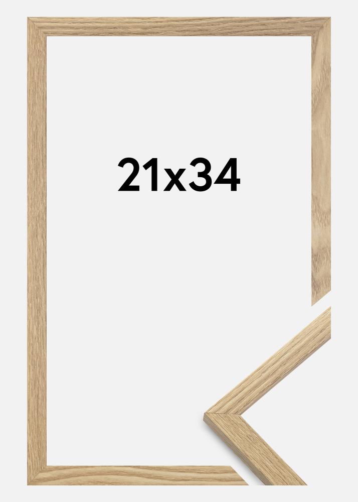 Ramen är tillverkad i MDF-material med en folierad ekfärgad yta och har en tunn ramprofil på 14 mm. Det finns gott om utrymme att komplettera dina bilder med en lyxig passepartout, tack vare ramens innerdjup (falsdjup) på 12 mm.