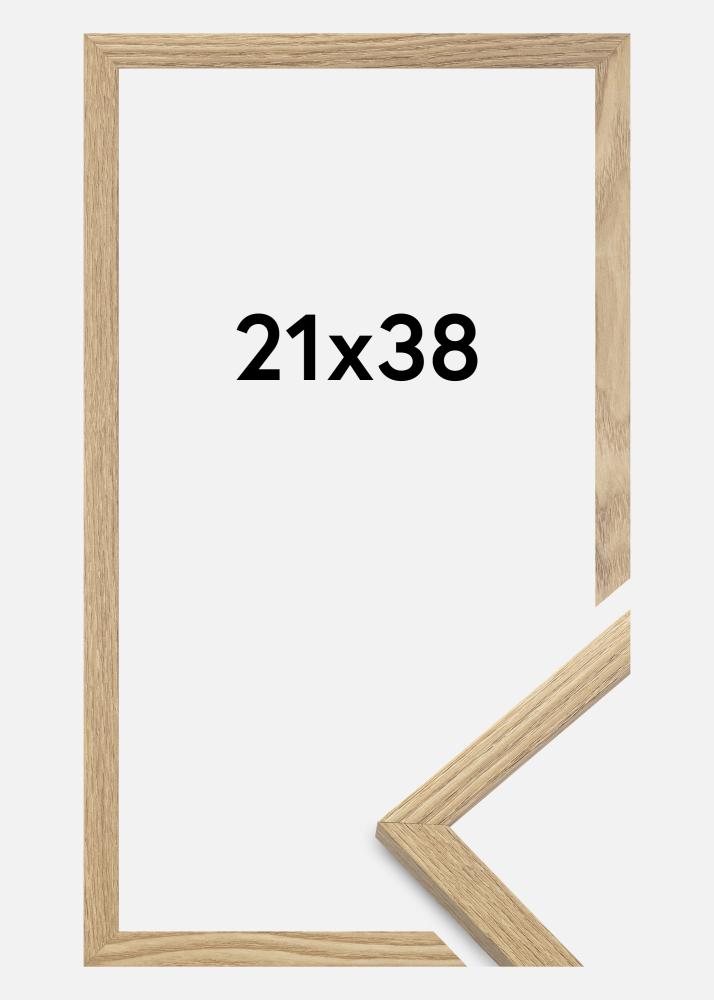 Ramen är tillverkad i MDF-material med en folierad ekfärgad yta och har en tunn ramprofil på 14 mm. Det finns gott om utrymme att komplettera dina bilder med en lyxig passepartout, tack vare ramens innerdjup (falsdjup) på 12 mm.
