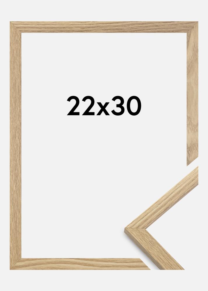 Ramen är tillverkad i MDF-material med en folierad ekfärgad yta och har en tunn ramprofil på 14 mm. Det finns gott om utrymme att komplettera dina bilder med en lyxig passepartout, tack vare ramens innerdjup (falsdjup) på 12 mm.