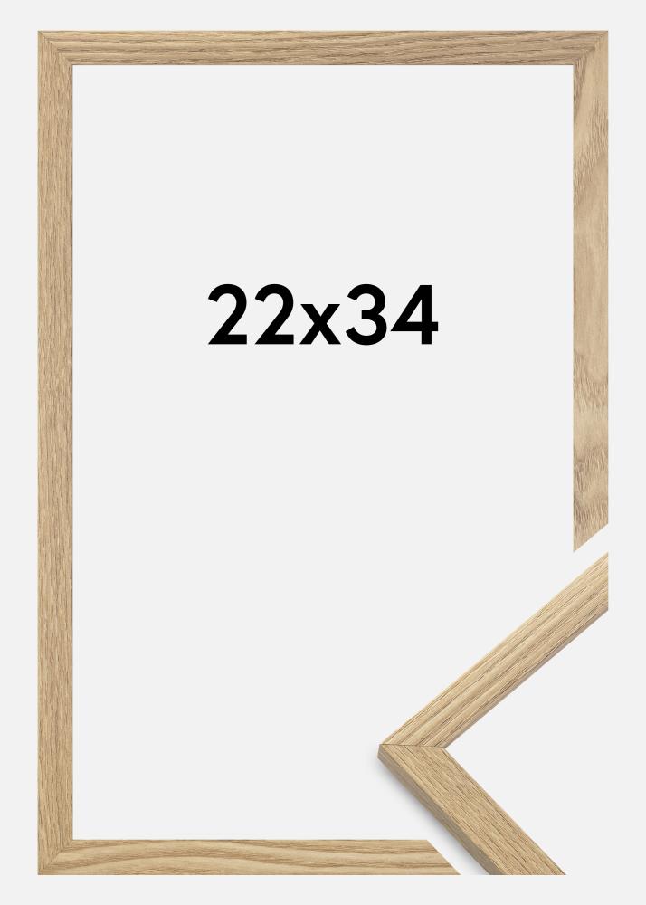Ramen är tillverkad i MDF-material med en folierad ekfärgad yta och har en tunn ramprofil på 14 mm. Det finns gott om utrymme att komplettera dina bilder med en lyxig passepartout, tack vare ramens innerdjup (falsdjup) på 12 mm.