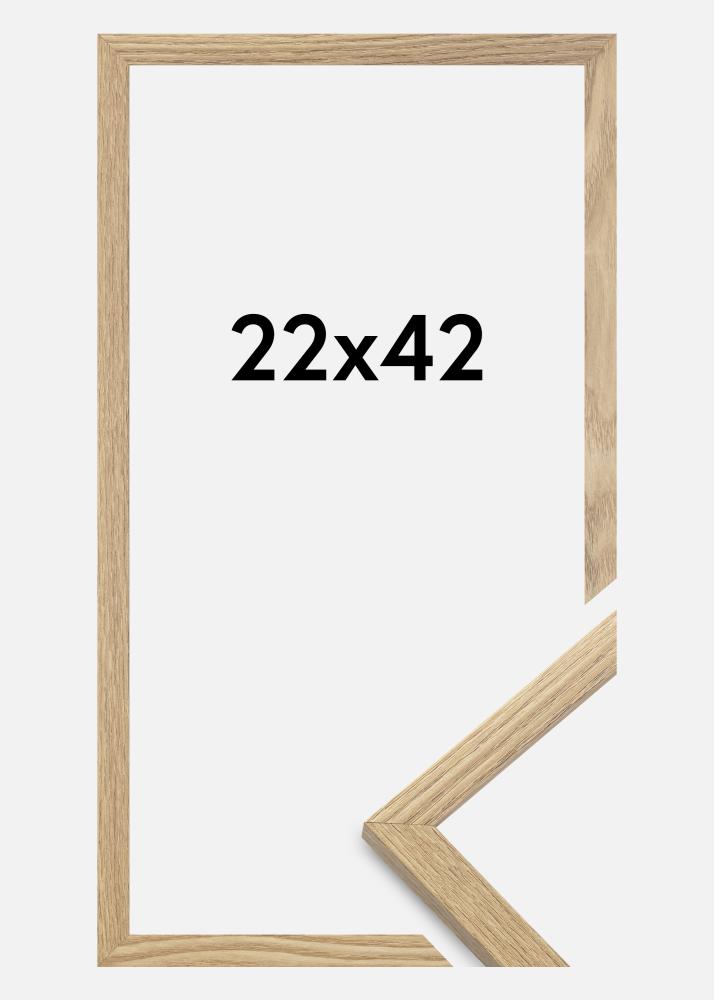 Ramen är tillverkad i MDF-material med en folierad ekfärgad yta och har en tunn ramprofil på 14 mm. Det finns gott om utrymme att komplettera dina bilder med en lyxig passepartout, tack vare ramens innerdjup (falsdjup) på 12 mm.