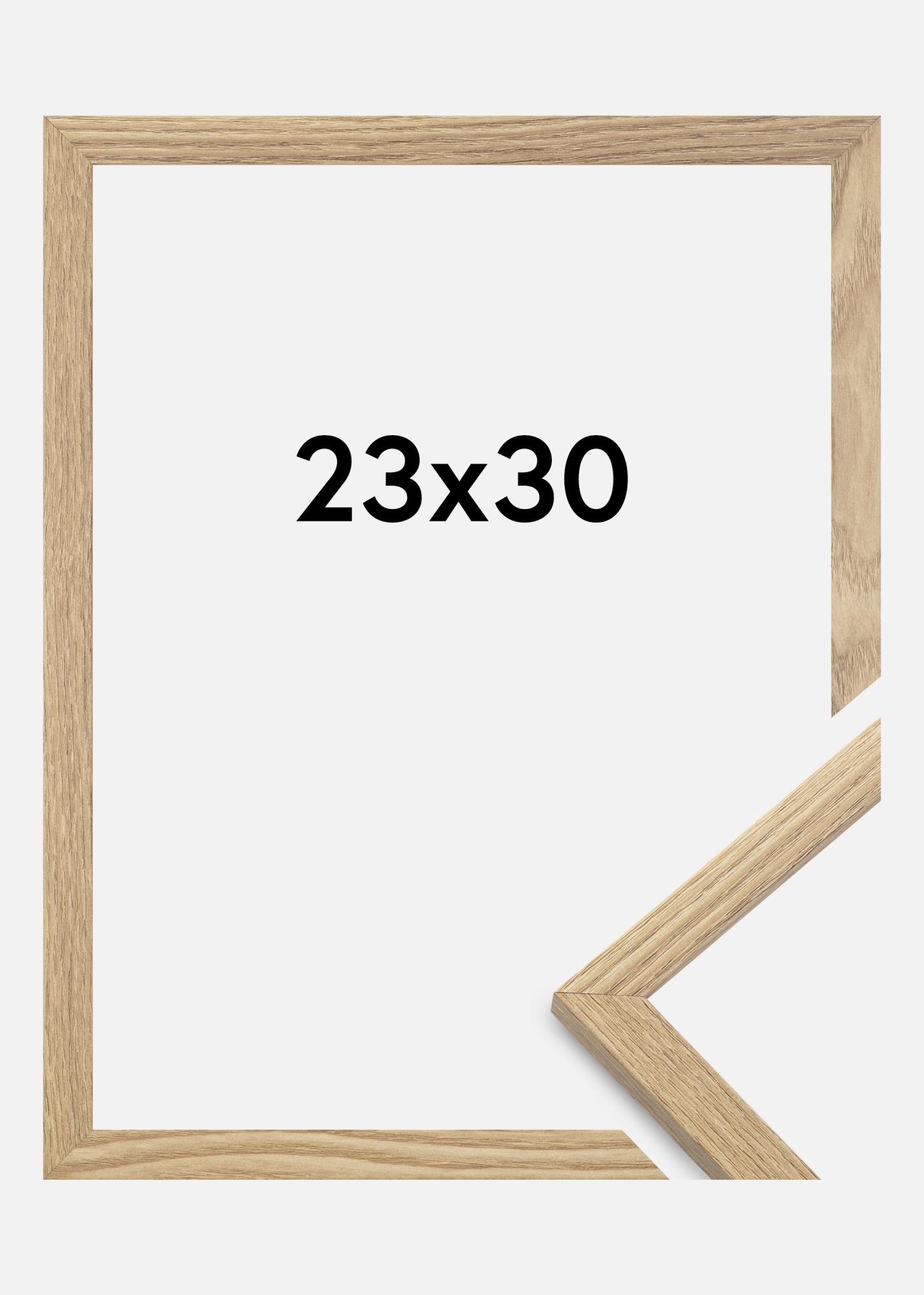 Ramen är tillverkad i MDF-material med en folierad ekfärgad yta och har en tunn ramprofil på 14 mm. Det finns gott om utrymme att komplettera dina bilder med en lyxig passepartout, tack vare ramens innerdjup (falsdjup) på 12 mm.