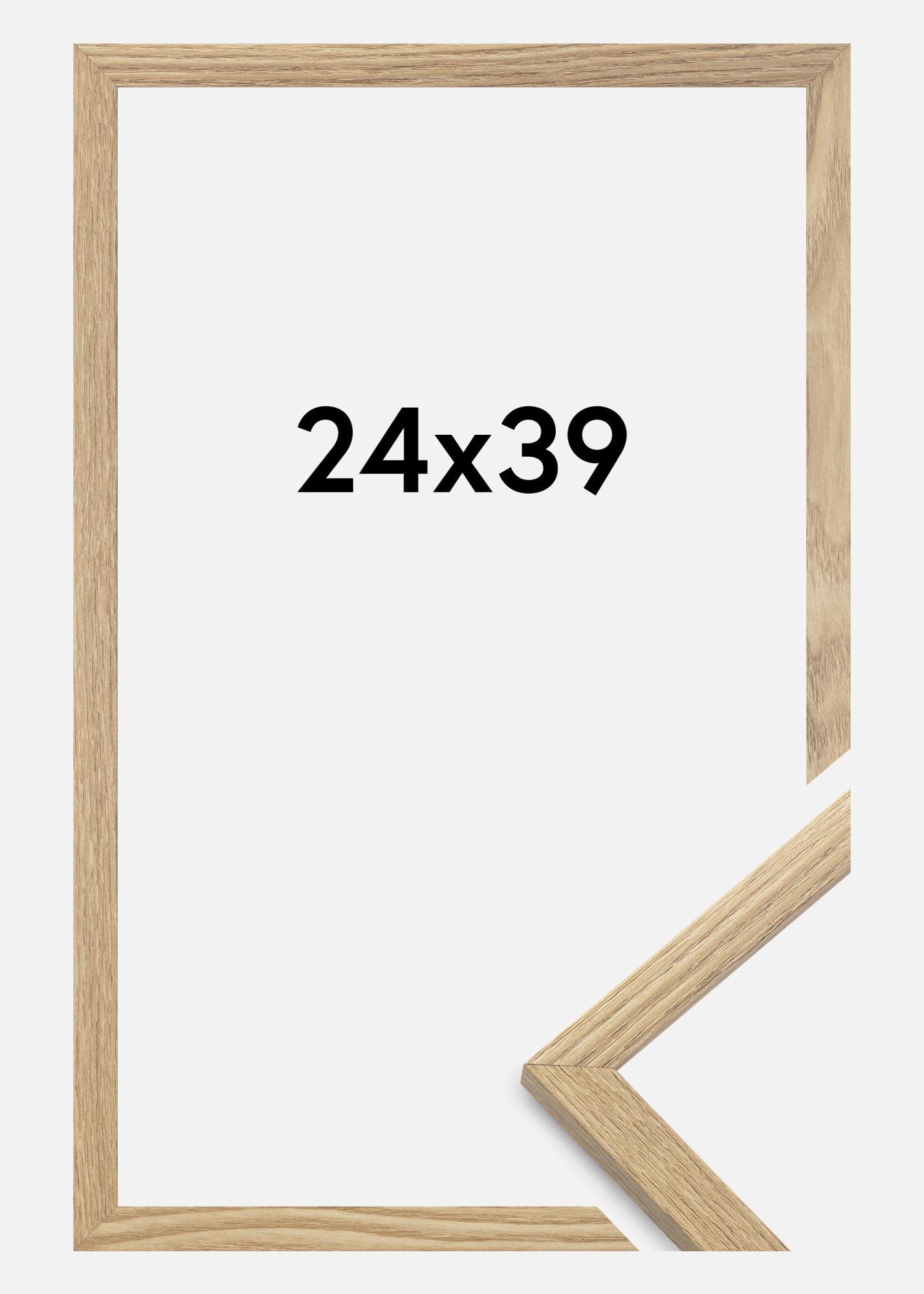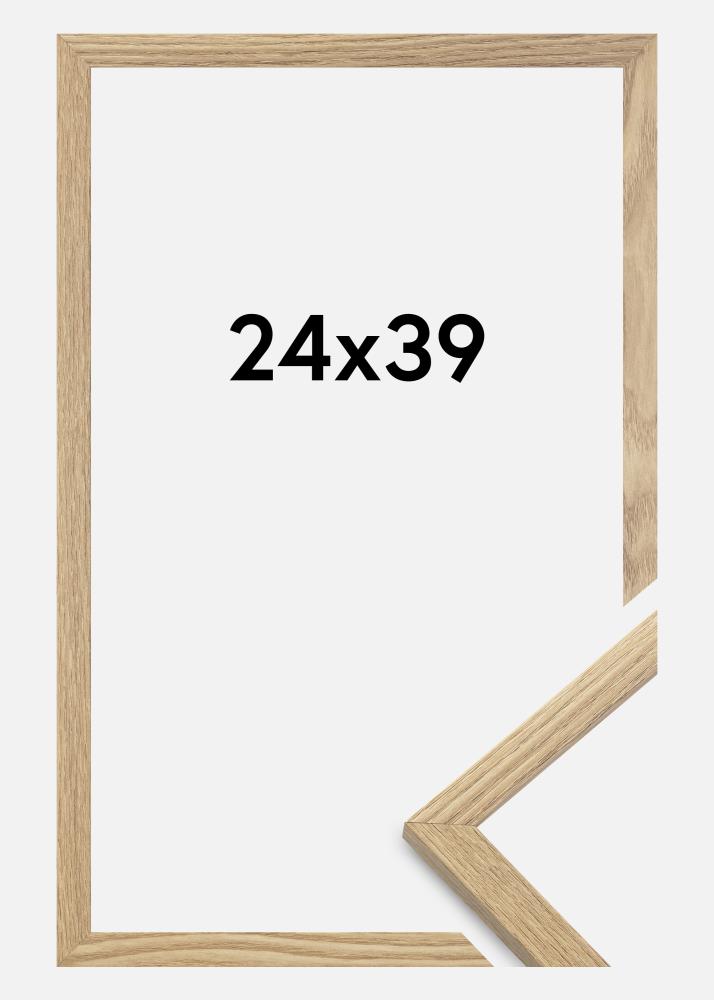 Ramen är tillverkad i MDF-material med en folierad ekfärgad yta och har en tunn ramprofil på 14 mm. Det finns gott om utrymme att komplettera dina bilder med en lyxig passepartout, tack vare ramens innerdjup (falsdjup) på 12 mm.