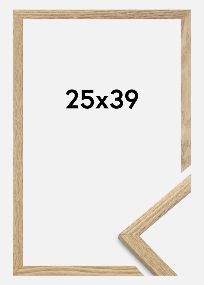 Ramen är tillverkad i MDF-material med en folierad ekfärgad yta och har en tunn ramprofil på 14 mm. Det finns gott om utrymme att komplettera dina bilder med en lyxig passepartout, tack vare ramens innerdjup (falsdjup) på 12 mm.