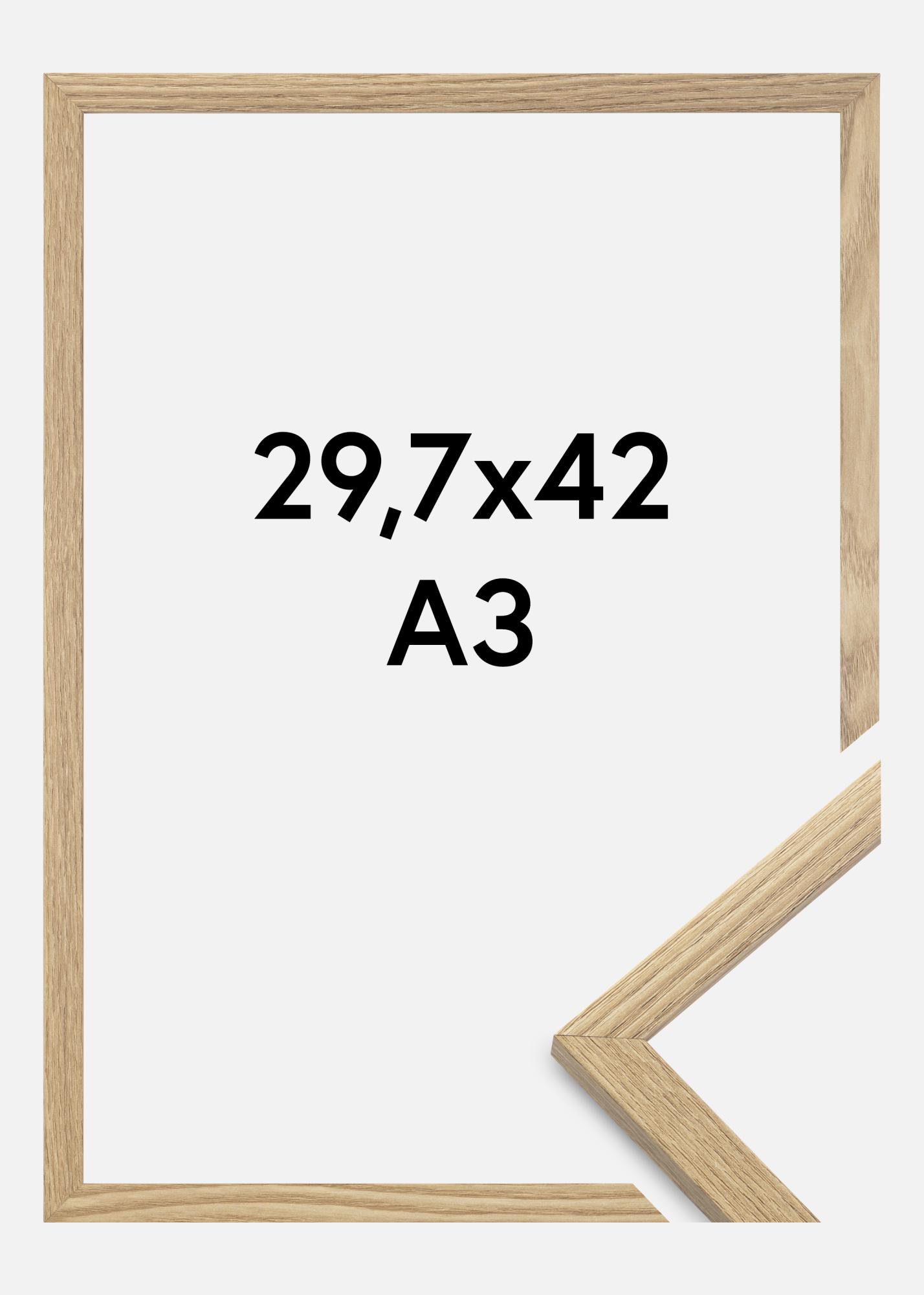 Ramen är tillverkad i MDF-material med en folierad ekfärgad yta och har en tunn ramprofil på 14 mm. Det finns gott om utrymme att komplettera dina bilder med en lyxig passepartout, tack vare ramens innerdjup (falsdjup) på 12 mm.