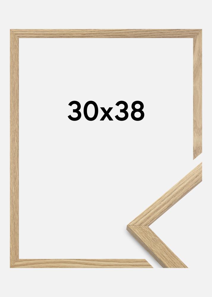 Ramen är tillverkad i MDF-material med en folierad ekfärgad yta och har en tunn ramprofil på 14 mm. Det finns gott om utrymme att komplettera dina bilder med en lyxig passepartout, tack vare ramens innerdjup (falsdjup) på 12 mm.
