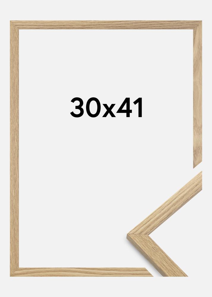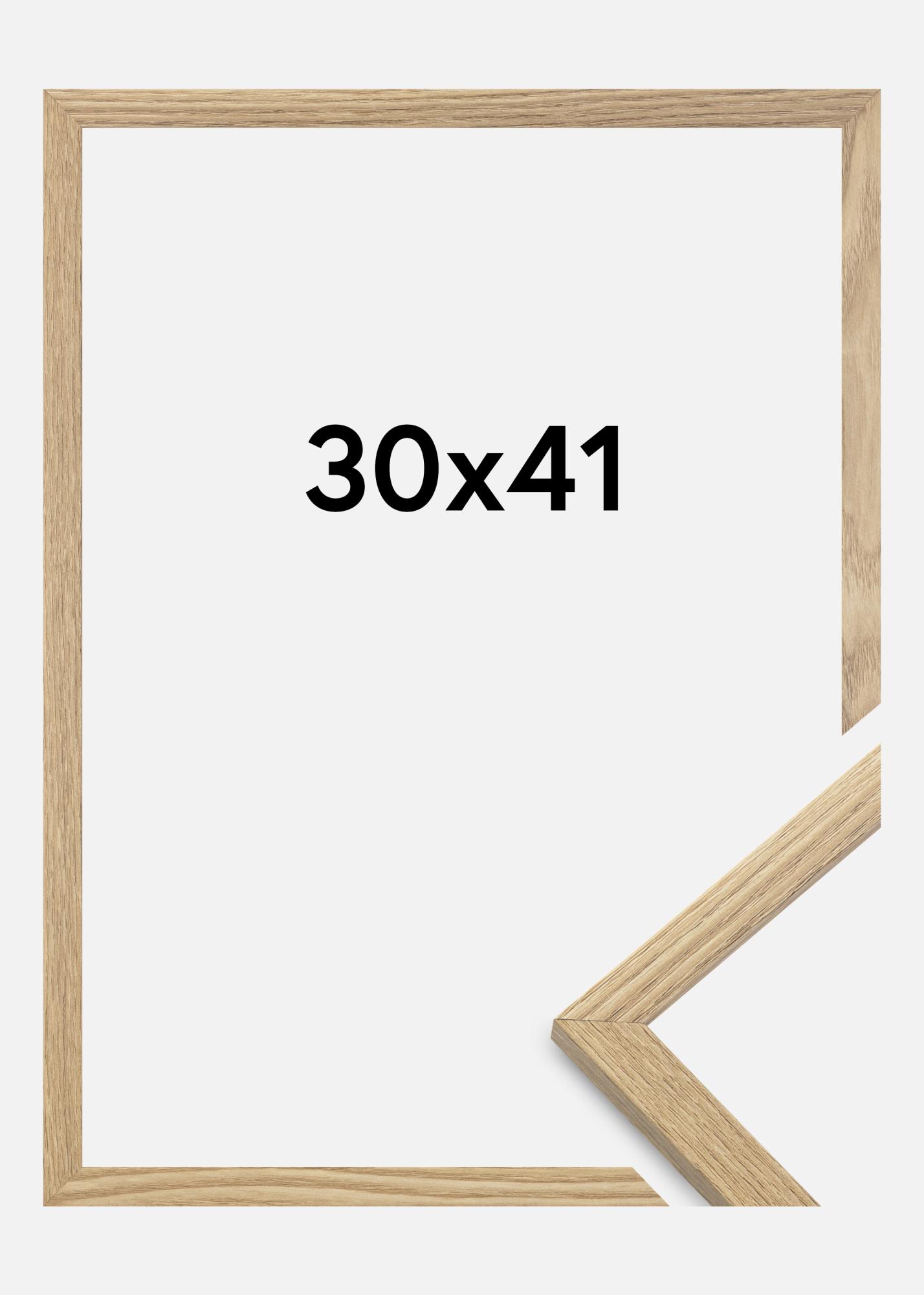 Ramen är tillverkad i MDF-material med en folierad ekfärgad yta och har en tunn ramprofil på 14 mm. Det finns gott om utrymme att komplettera dina bilder med en lyxig passepartout, tack vare ramens innerdjup (falsdjup) på 12 mm.