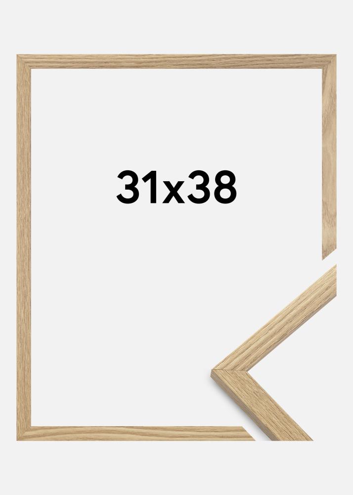 Ramen är tillverkad i MDF-material med en folierad ekfärgad yta och har en tunn ramprofil på 14 mm. Det finns gott om utrymme att komplettera dina bilder med en lyxig passepartout, tack vare ramens innerdjup (falsdjup) på 12 mm.