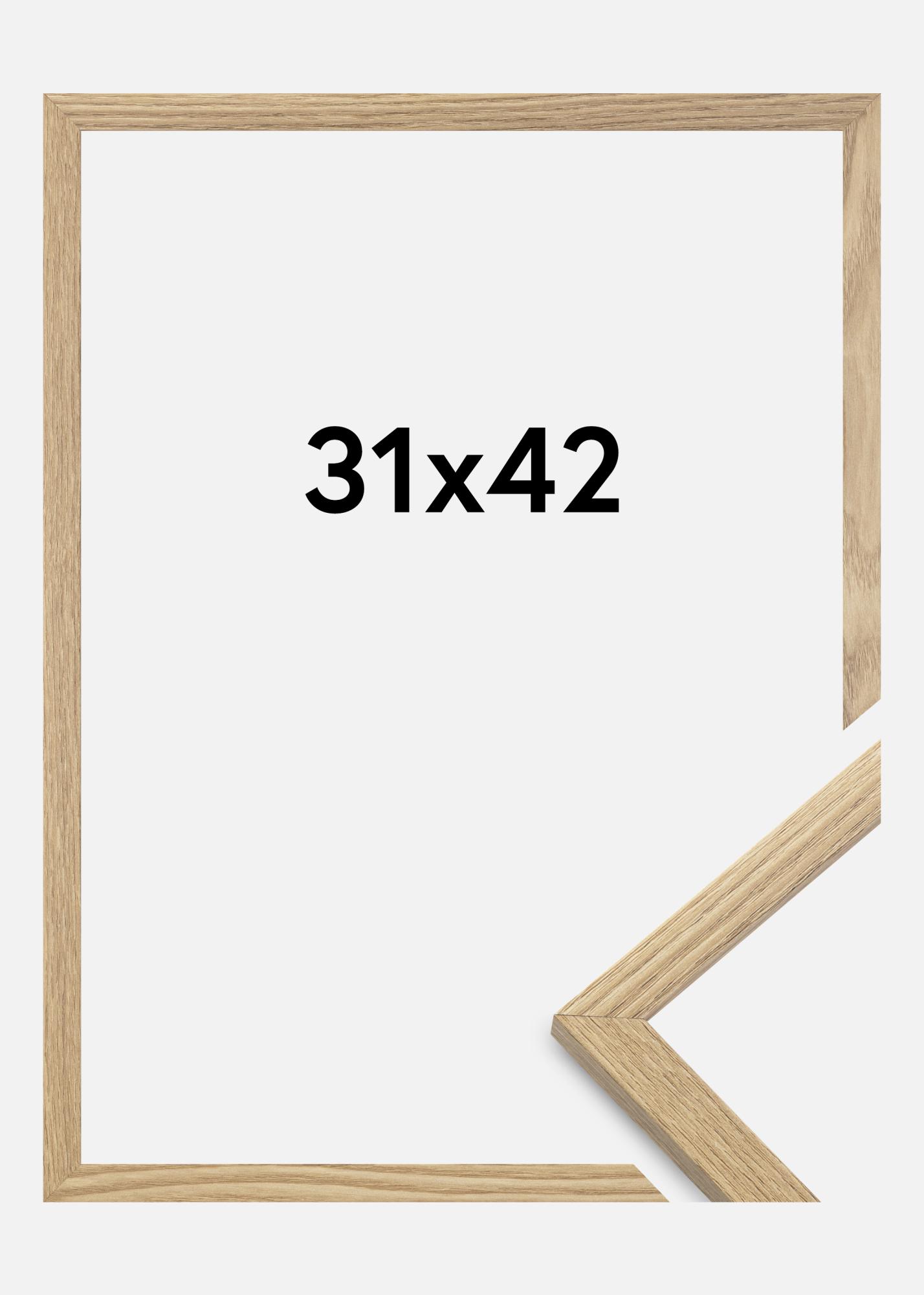 Ramen är tillverkad i MDF-material med en folierad ekfärgad yta och har en tunn ramprofil på 14 mm. Det finns gott om utrymme att komplettera dina bilder med en lyxig passepartout, tack vare ramens innerdjup (falsdjup) på 12 mm.