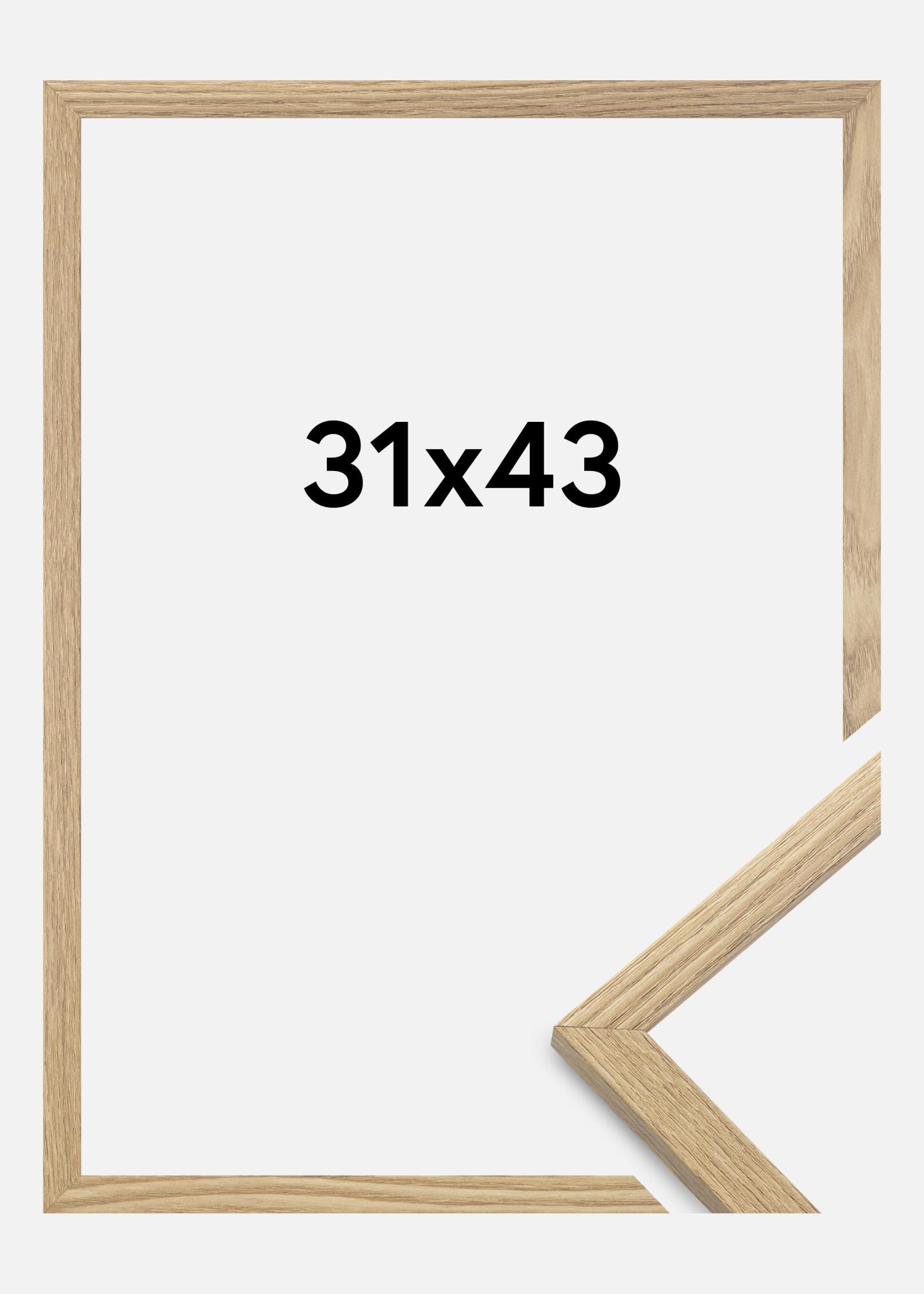 Ramen är tillverkad i MDF-material med en folierad ekfärgad yta och har en tunn ramprofil på 14 mm. Det finns gott om utrymme att komplettera dina bilder med en lyxig passepartout, tack vare ramens innerdjup (falsdjup) på 12 mm.