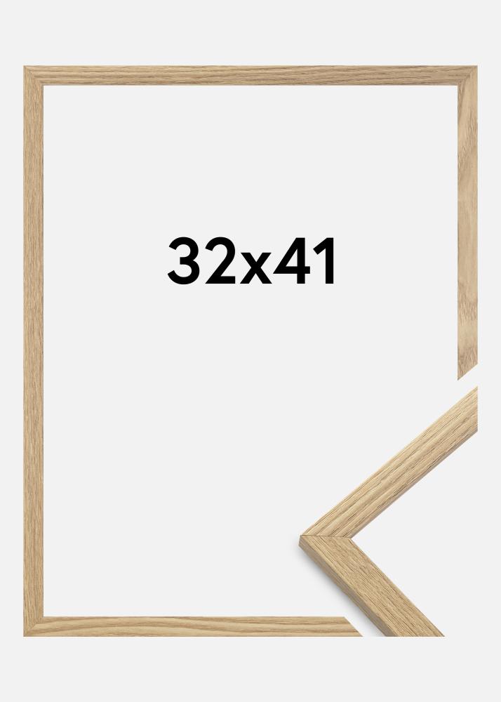 Ramen är tillverkad i MDF-material med en folierad ekfärgad yta och har en tunn ramprofil på 14 mm. Det finns gott om utrymme att komplettera dina bilder med en lyxig passepartout, tack vare ramens innerdjup (falsdjup) på 12 mm.