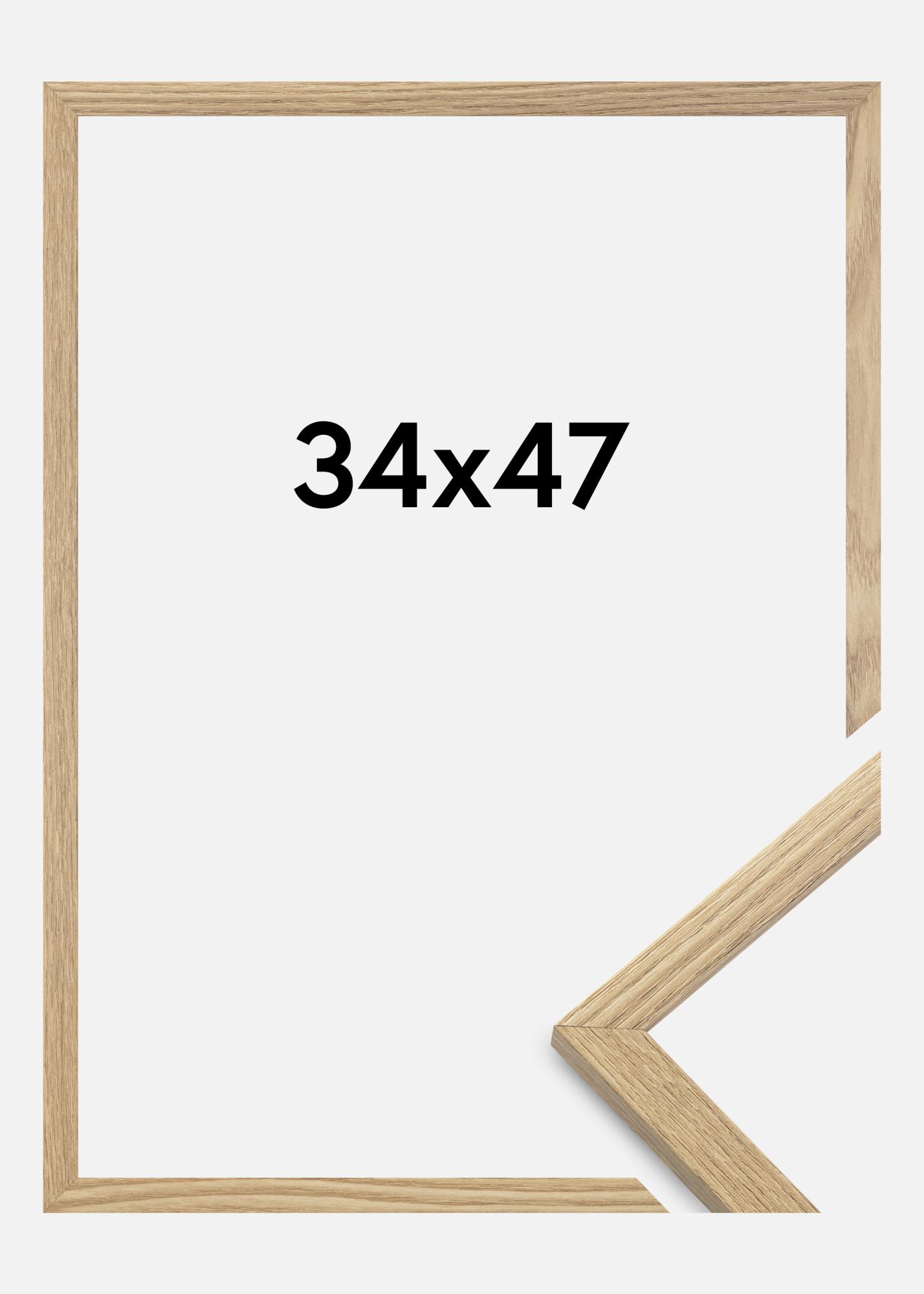 Ramen är tillverkad i MDF-material med en folierad ekfärgad yta och har en tunn ramprofil på 14 mm. Det finns gott om utrymme att komplettera dina bilder med en lyxig passepartout, tack vare ramens innerdjup (falsdjup) på 12 mm.