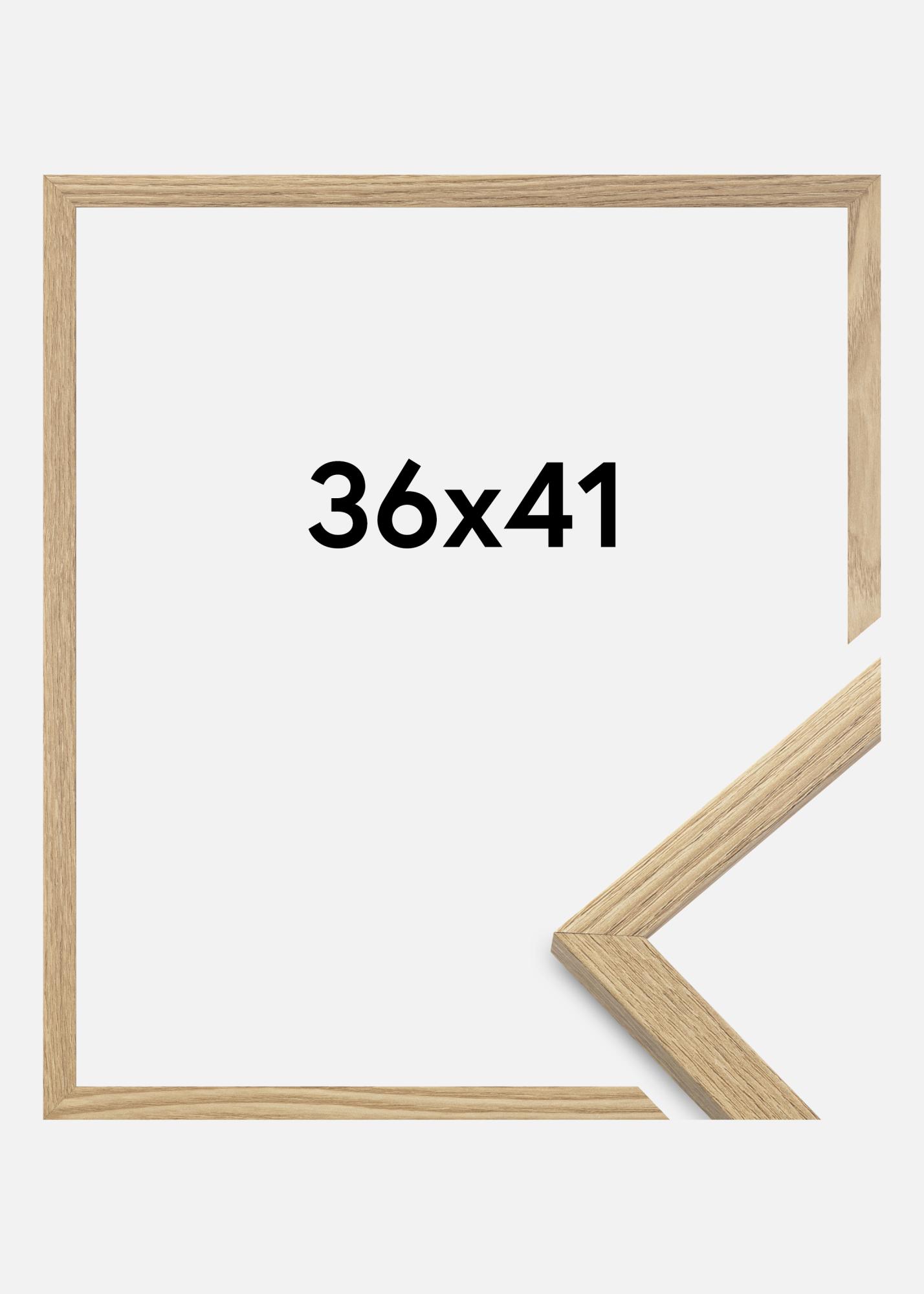 Ramen är tillverkad i MDF-material med en folierad ekfärgad yta och har en tunn ramprofil på 14 mm. Det finns gott om utrymme att komplettera dina bilder med en lyxig passepartout, tack vare ramens innerdjup (falsdjup) på 12 mm.