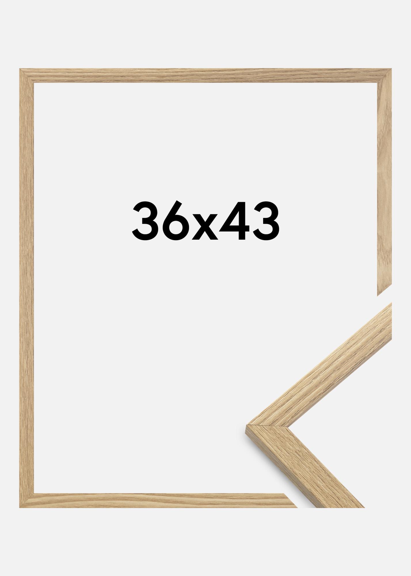Ramen är tillverkad i MDF-material med en folierad ekfärgad yta och har en tunn ramprofil på 14 mm. Det finns gott om utrymme att komplettera dina bilder med en lyxig passepartout, tack vare ramens innerdjup (falsdjup) på 12 mm.