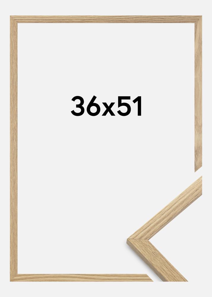 Ramen är tillverkad i MDF-material med en folierad ekfärgad yta och har en tunn ramprofil på 14 mm. Det finns gott om utrymme att komplettera dina bilder med en lyxig passepartout, tack vare ramens innerdjup (falsdjup) på 12 mm.
