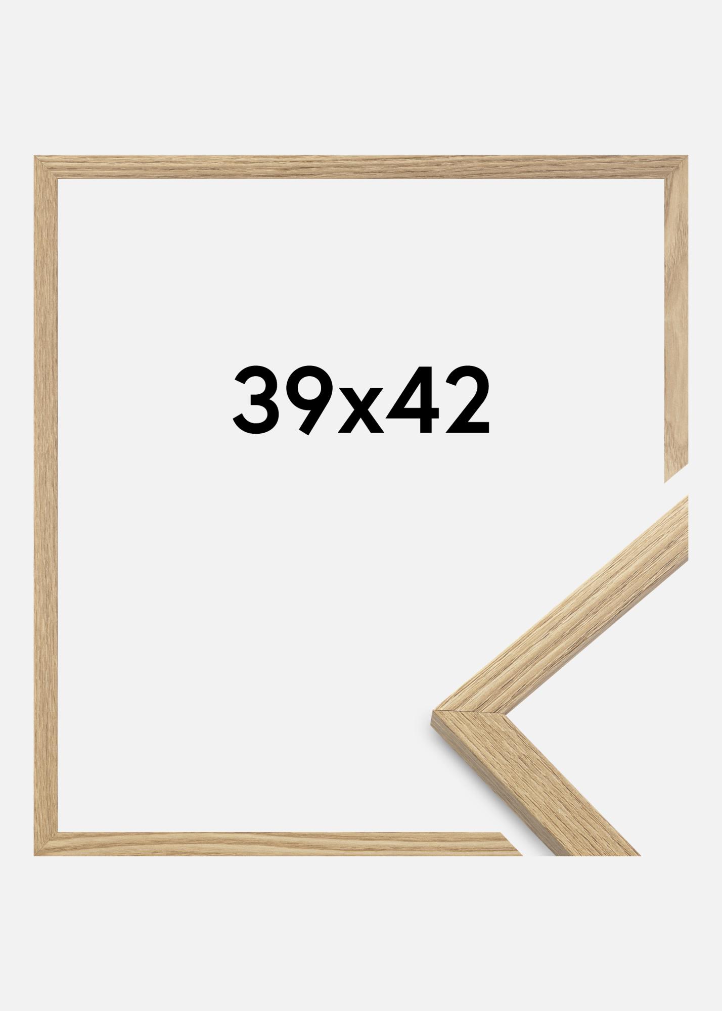 Ramen är tillverkad i MDF-material med en folierad ekfärgad yta och har en tunn ramprofil på 14 mm. Det finns gott om utrymme att komplettera dina bilder med en lyxig passepartout, tack vare ramens innerdjup (falsdjup) på 12 mm.