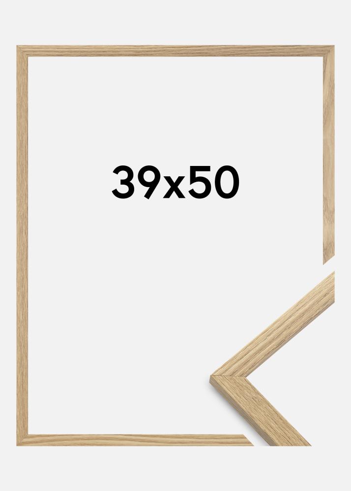 Ramen är tillverkad i MDF-material med en folierad ekfärgad yta och har en tunn ramprofil på 14 mm. Det finns gott om utrymme att komplettera dina bilder med en lyxig passepartout, tack vare ramens innerdjup (falsdjup) på 12 mm.