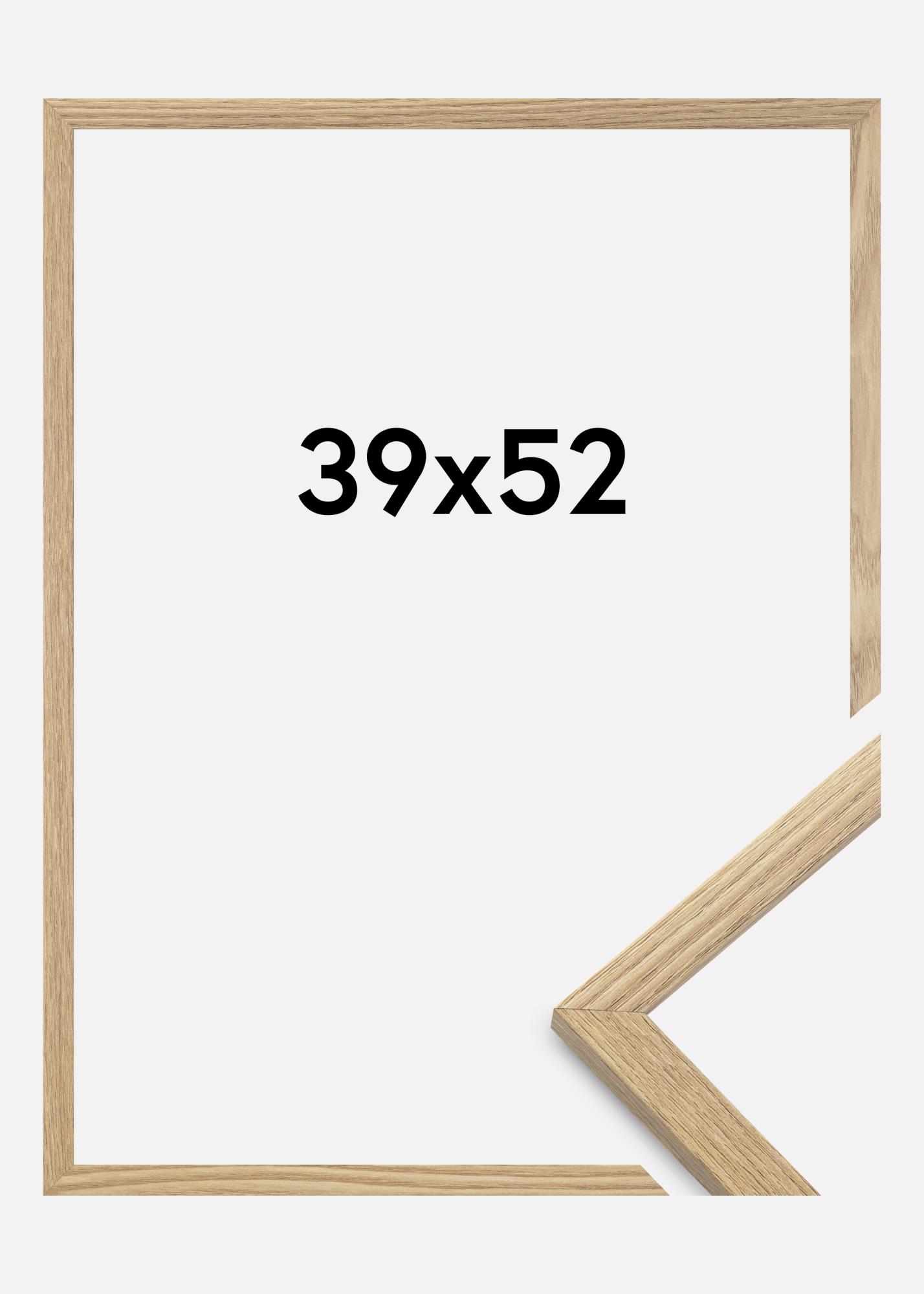 Ramen är tillverkad i MDF-material med en folierad ekfärgad yta och har en tunn ramprofil på 14 mm. Det finns gott om utrymme att komplettera dina bilder med en lyxig passepartout, tack vare ramens innerdjup (falsdjup) på 12 mm.