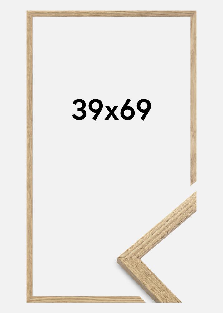 Ramen är tillverkad i MDF-material med en folierad ekfärgad yta och har en tunn ramprofil på 14 mm. Det finns gott om utrymme att komplettera dina bilder med en lyxig passepartout, tack vare ramens innerdjup (falsdjup) på 12 mm.