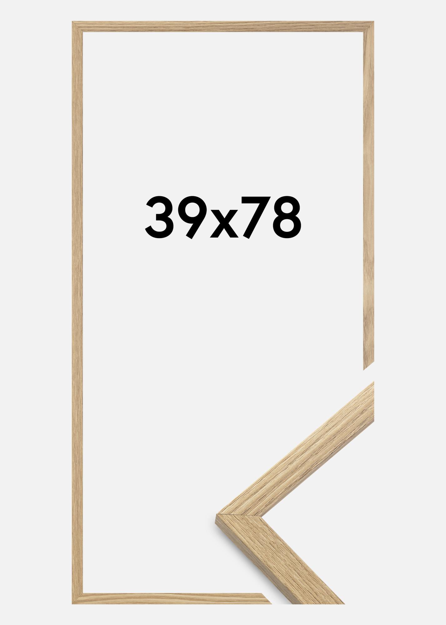 Ramen är tillverkad i MDF-material med en folierad ekfärgad yta och har en tunn ramprofil på 14 mm. Det finns gott om utrymme att komplettera dina bilder med en lyxig passepartout, tack vare ramens innerdjup (falsdjup) på 12 mm.