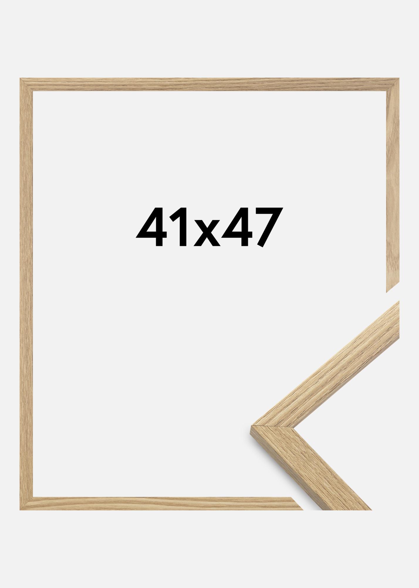 Ramen är tillverkad i MDF-material med en folierad ekfärgad yta och har en tunn ramprofil på 14 mm. Det finns gott om utrymme att komplettera dina bilder med en lyxig passepartout, tack vare ramens innerdjup (falsdjup) på 12 mm.