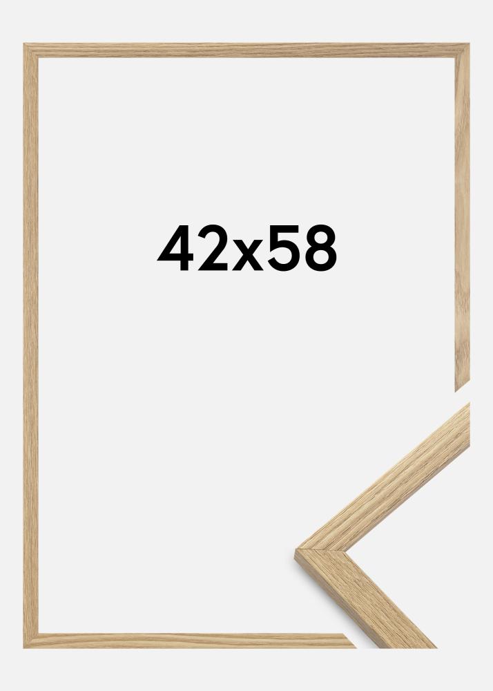 Ramen är tillverkad i MDF-material med en folierad ekfärgad yta och har en tunn ramprofil på 14 mm. Det finns gott om utrymme att komplettera dina bilder med en lyxig passepartout, tack vare ramens innerdjup (falsdjup) på 12 mm.
