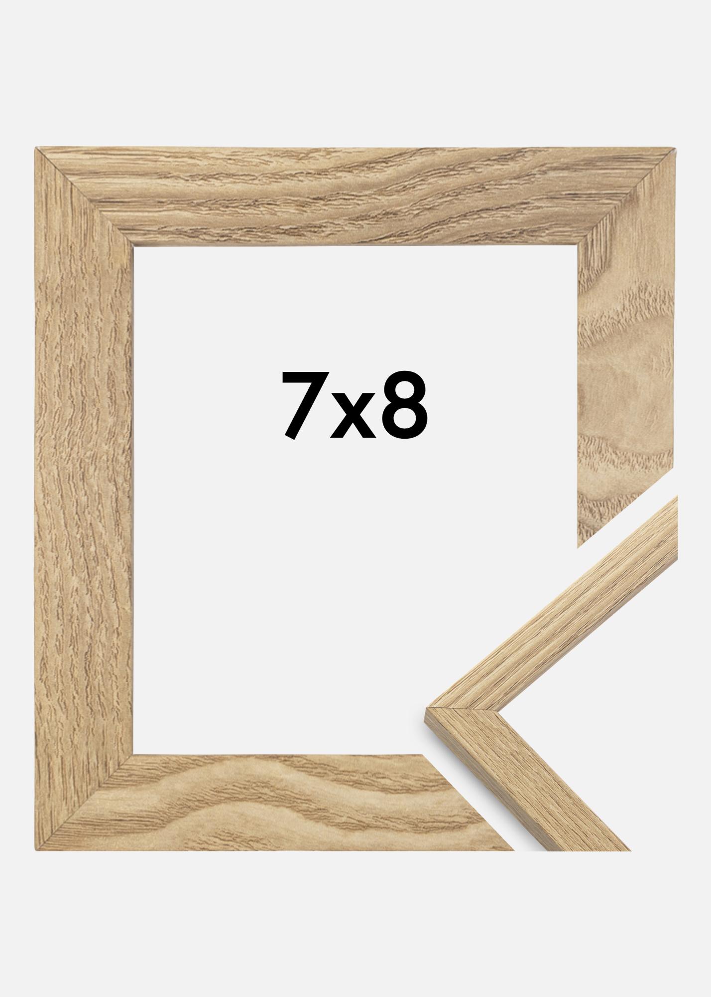 Ramen är tillverkad i MDF-material med en folierad ekfärgad yta och har en tunn ramprofil på 14 mm. Det finns gott om utrymme att komplettera dina bilder med en lyxig passepartout, tack vare ramens innerdjup (falsdjup) på 12 mm.