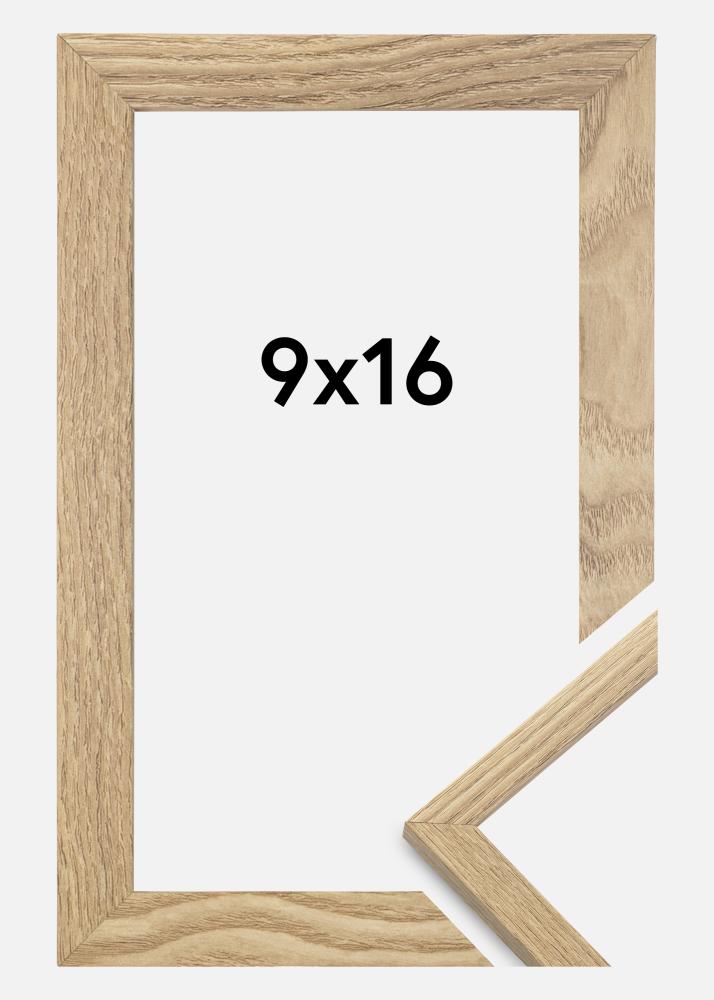 Ramen är tillverkad i MDF-material med en folierad ekfärgad yta och har en tunn ramprofil på 14 mm. Det finns gott om utrymme att komplettera dina bilder med en lyxig passepartout, tack vare ramens innerdjup (falsdjup) på 12 mm.